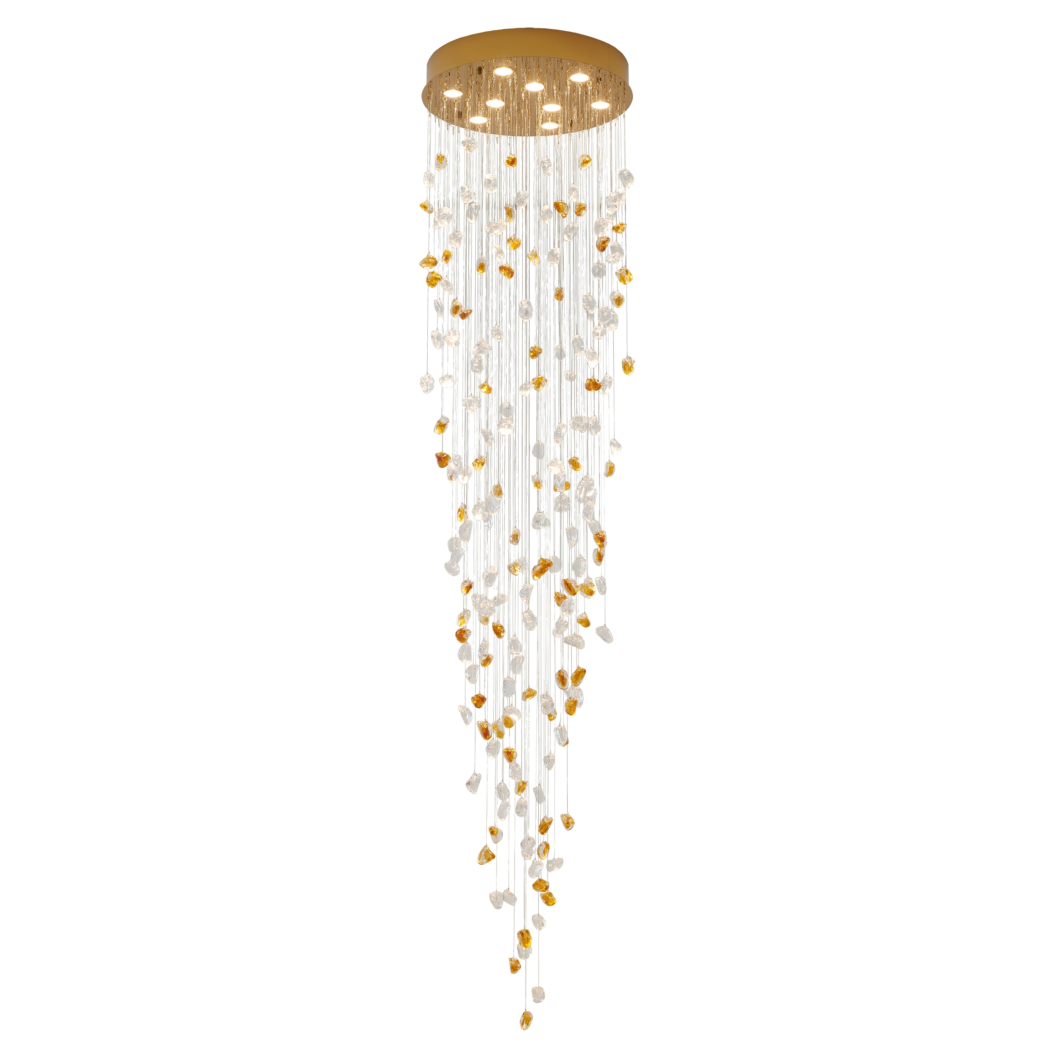 9-Light Brass Chandelier With Clear And Amber Glass Stones
