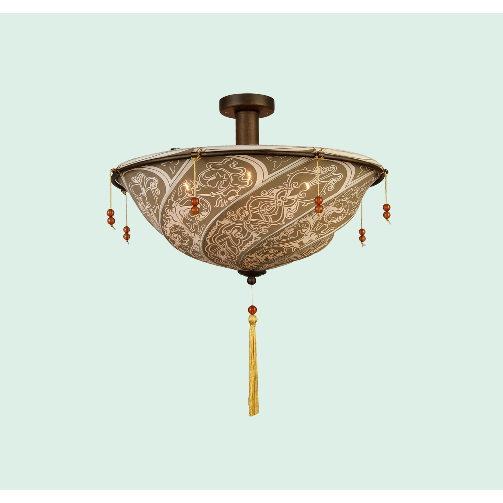 4-Light Brown Patterned Fabric Lighting Fixture