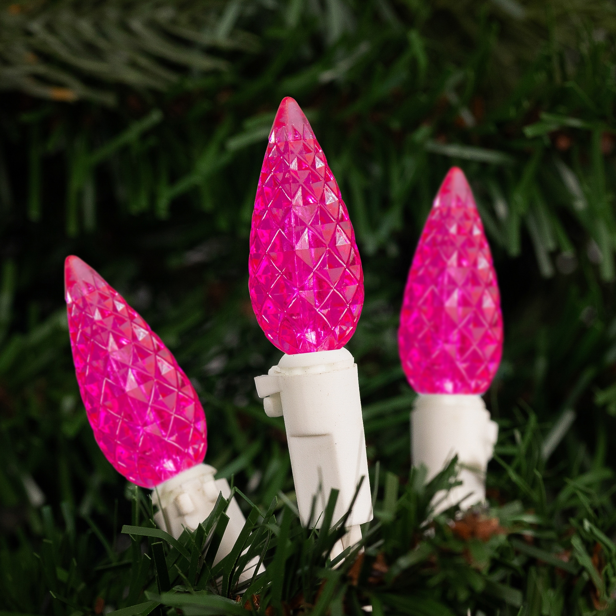 LED C6 Faceted Christmas Lights - Pink - 22.5' White Wire - 70ct