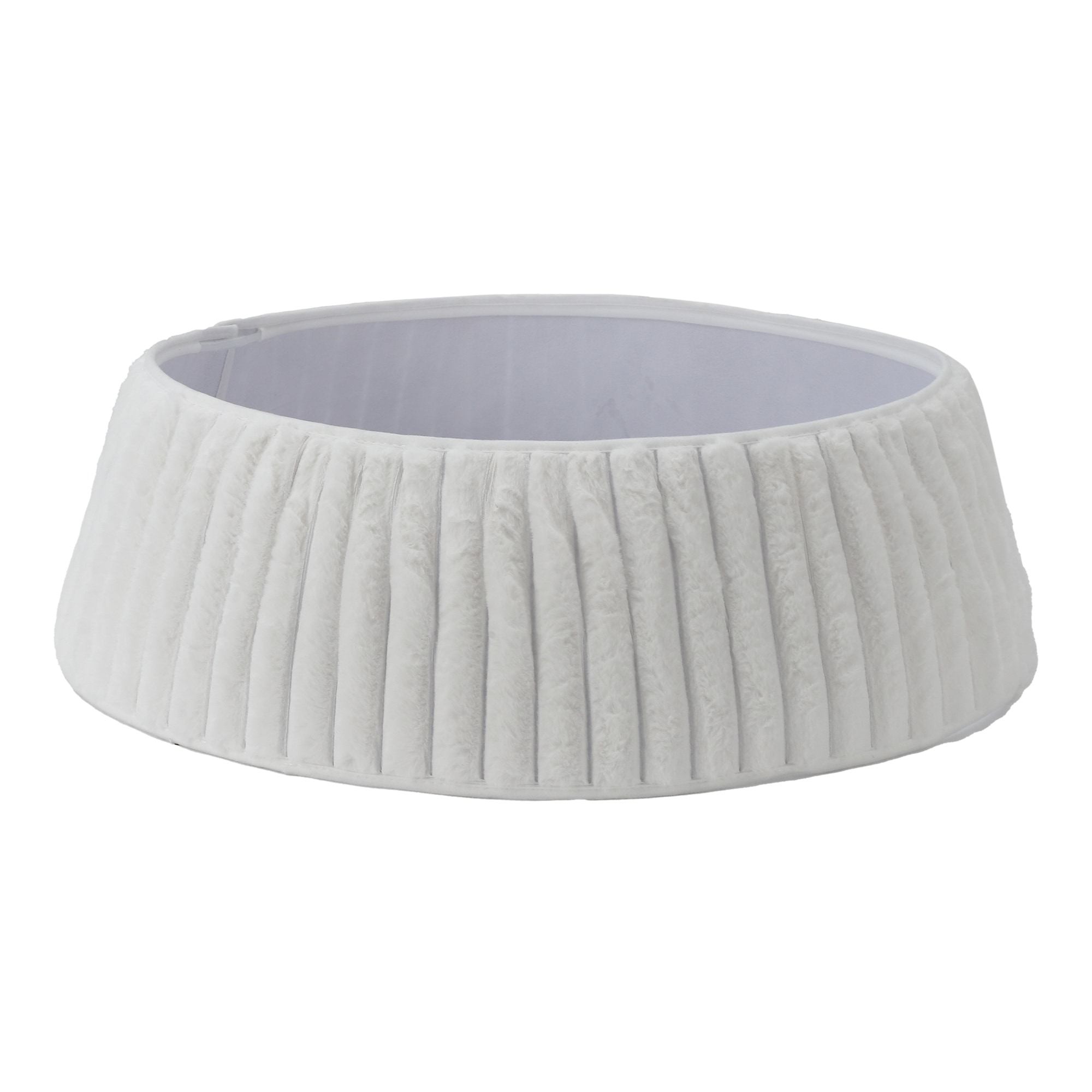 Luxury White Plush Christmas Tree Collar - Striped Faux Fur Skirt for 4-6 ft Trees, 23-28" Adjustable Diameter
