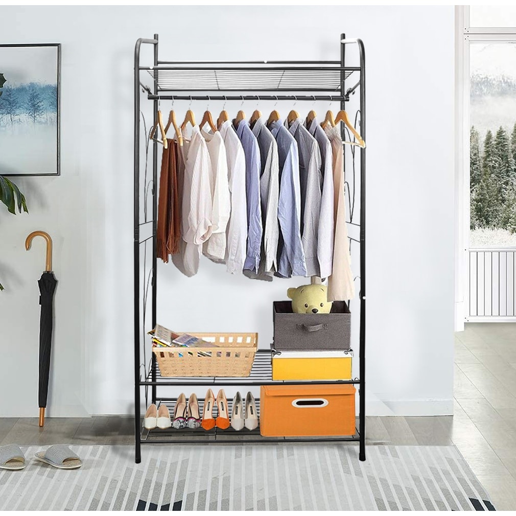 Heavy Duty Black Metal Closet Organizer Garment Rack Clothes Hanger Home Shelf - 31x14.2x63.4 inch