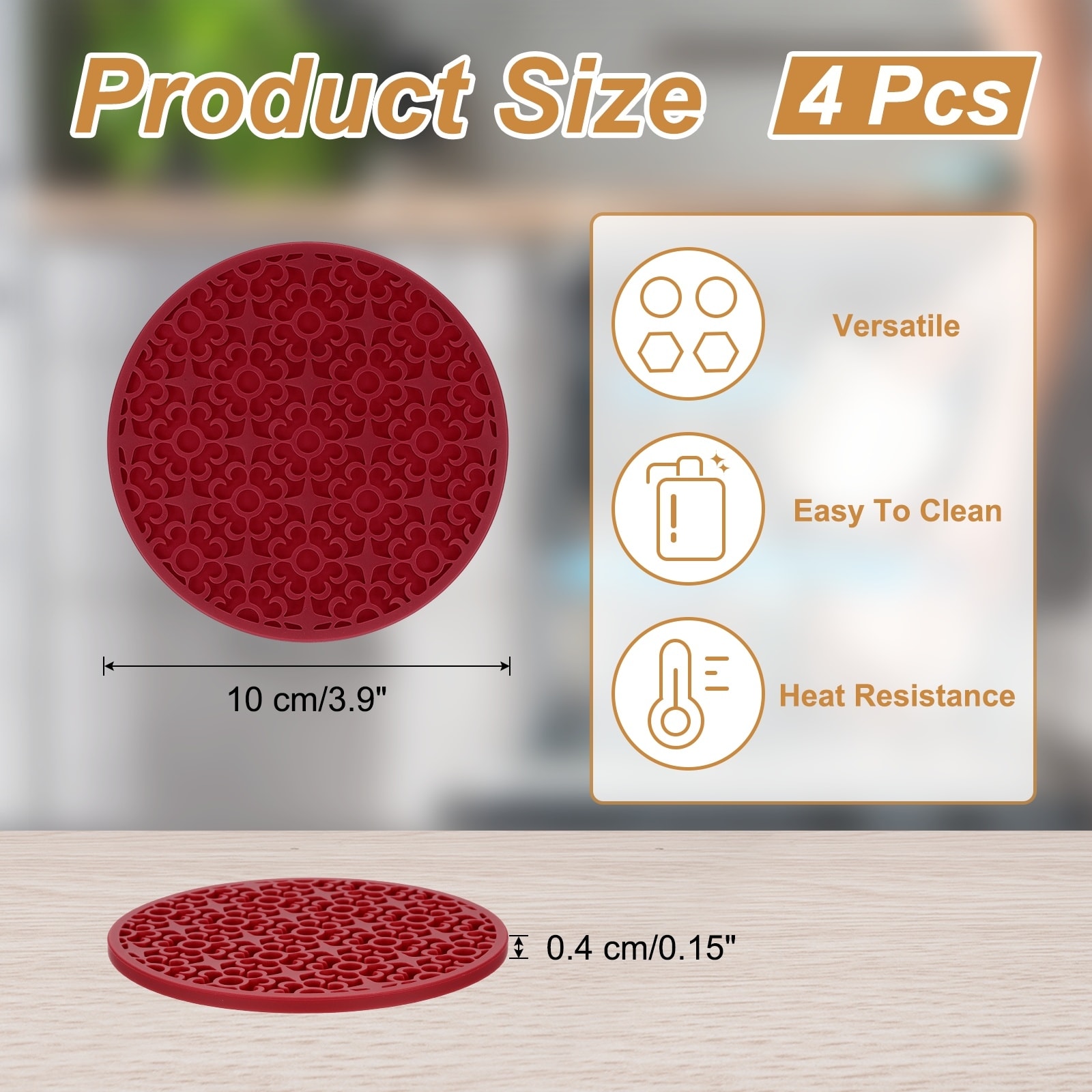 Silicone Coasters for Drinks, Round Cup Coasters Flower Pattern Coffee Cup Mat Table Pad