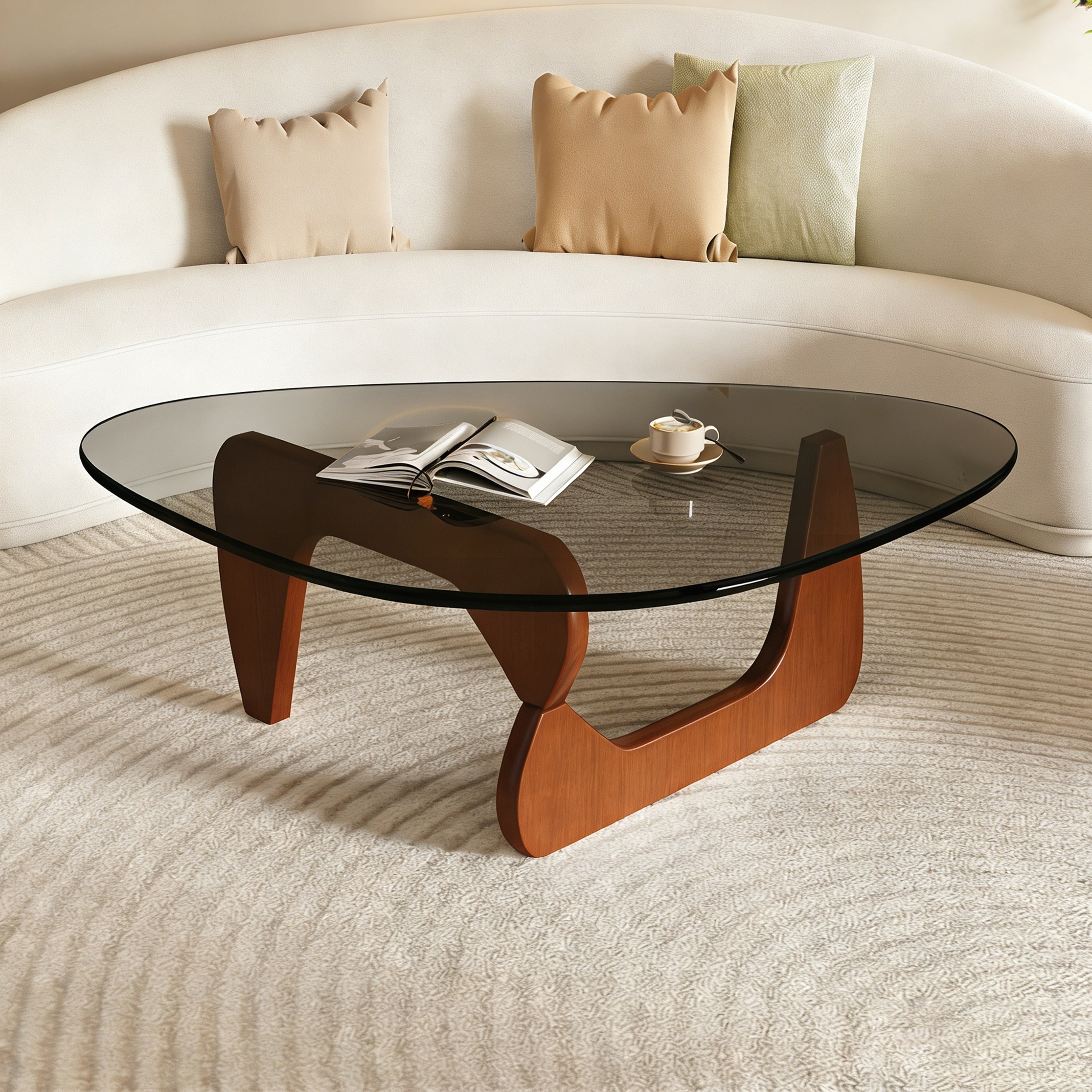 Mid Century Modern Round Coffee Table with Tempered Glass Top for Living Room