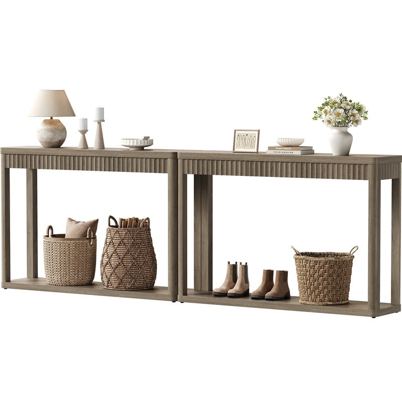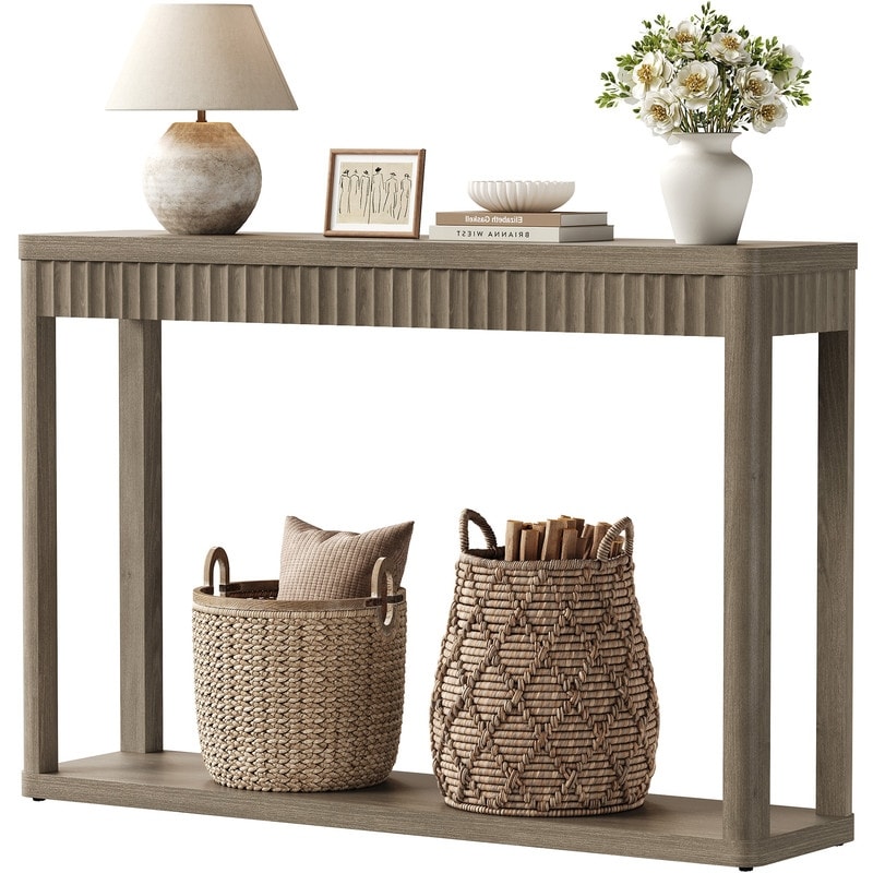 31.49" H Modern Fluted Console Table with Storage Shelf, Narrow Entryway Sofa Table for Living Room, Hallway