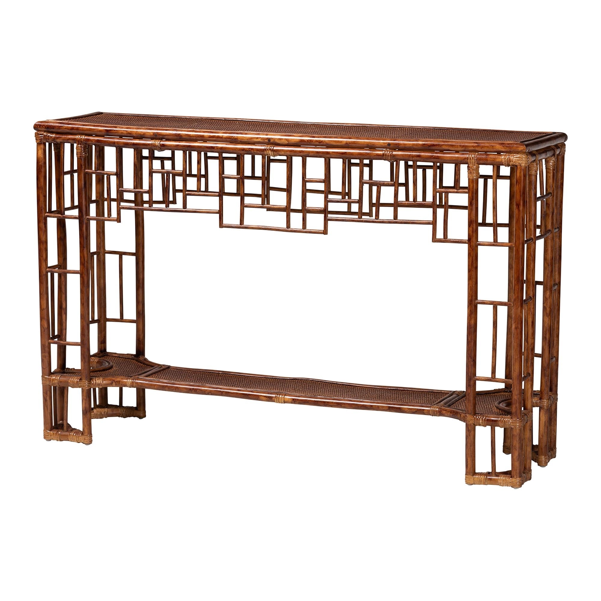 Tahlia Marbled Tortoise Natural Rattan Console Table - Handcrafted Wicker Accent Table with Coastal Boho Style