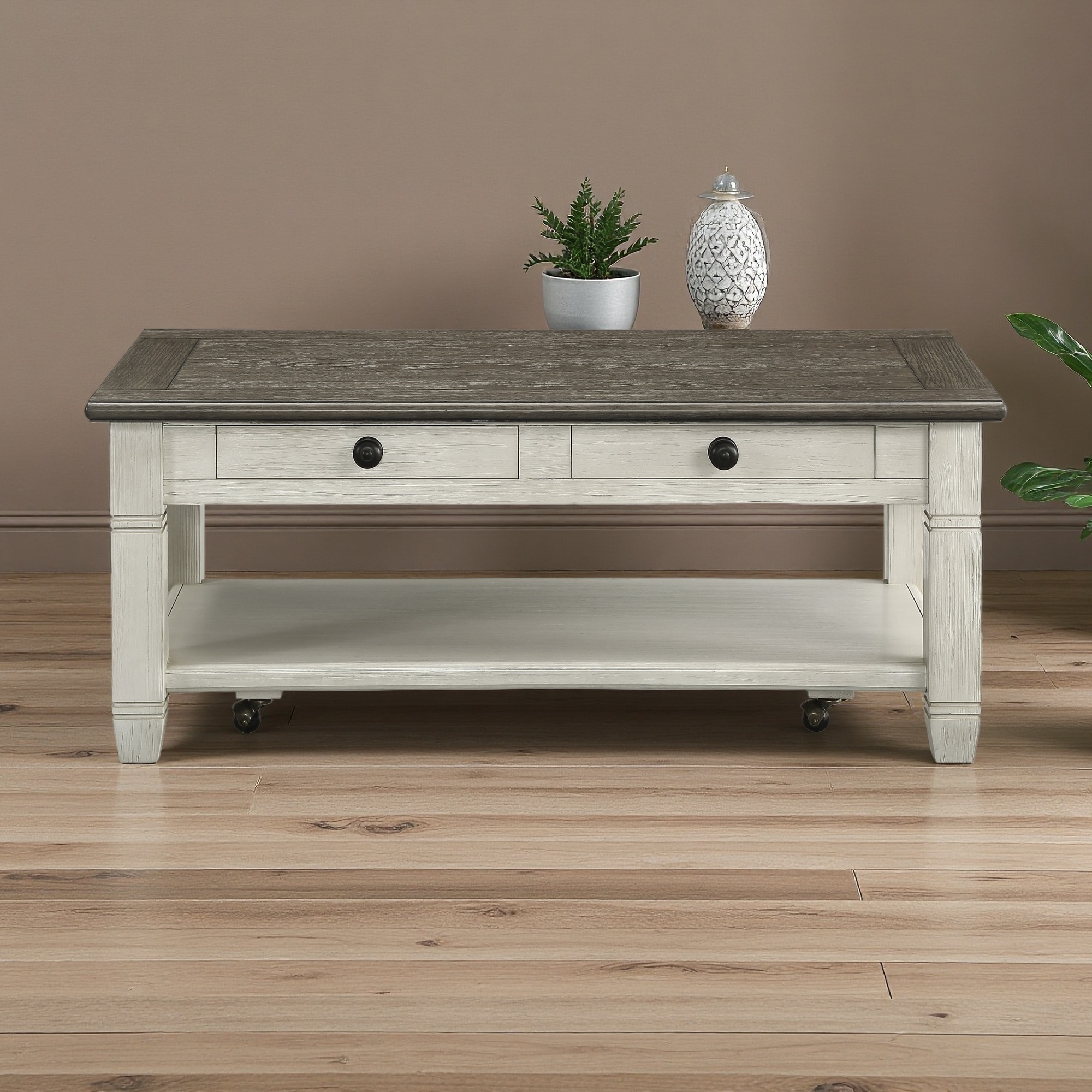 48" Cocktail Table with 2 Drawers, Shelf & Casters