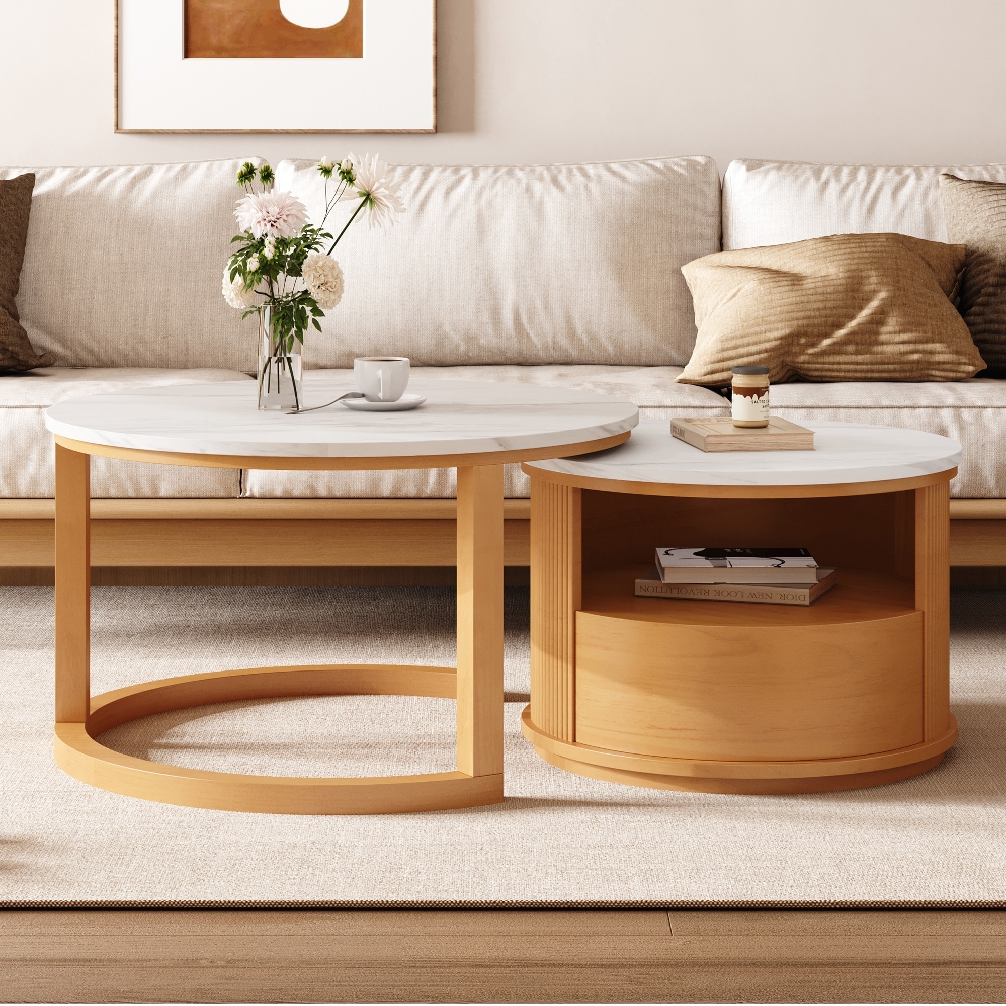 Round Nesting Coffee Table with White Marble Top