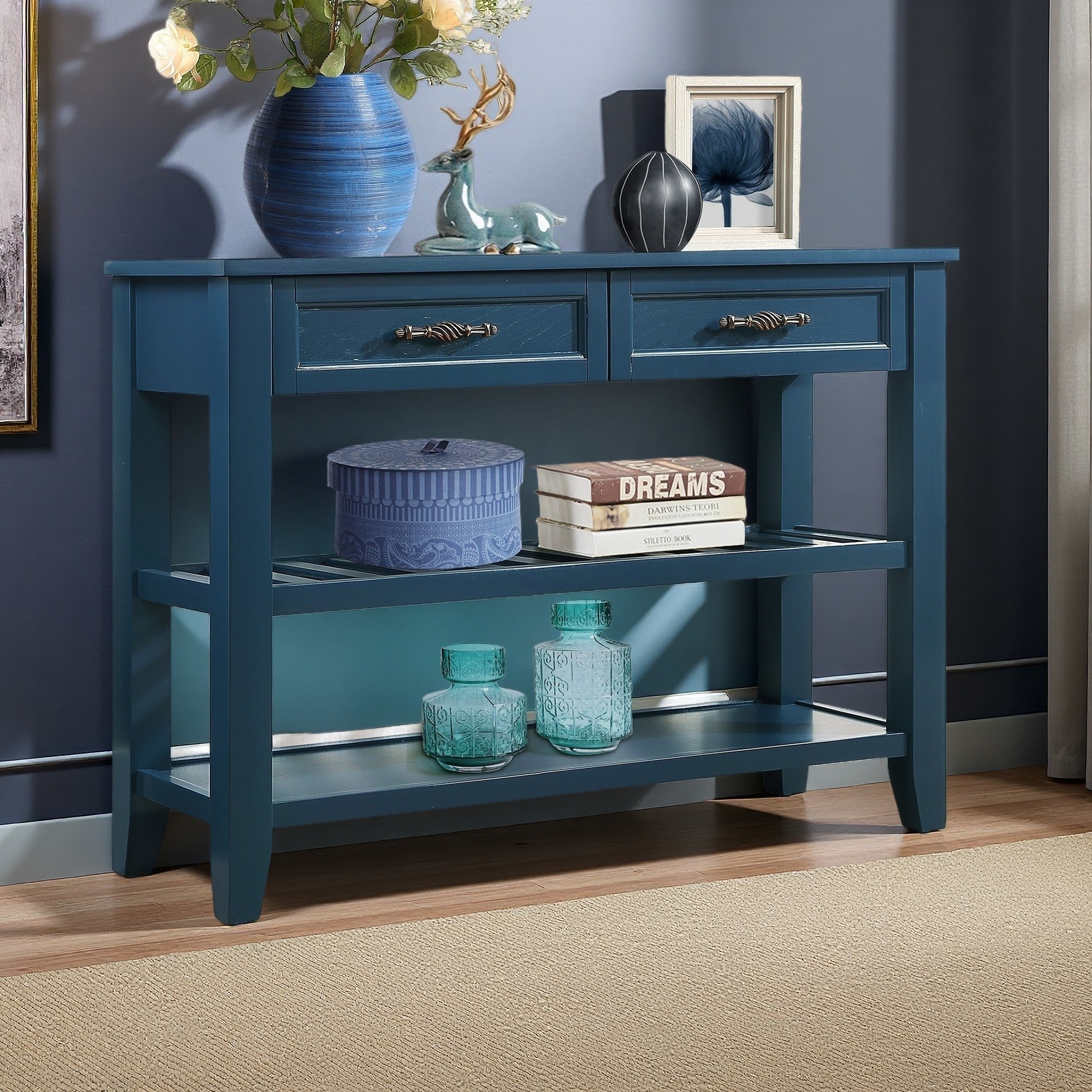 42" Solid Wood Buffet Console Table with 2 Drawers & Shelves