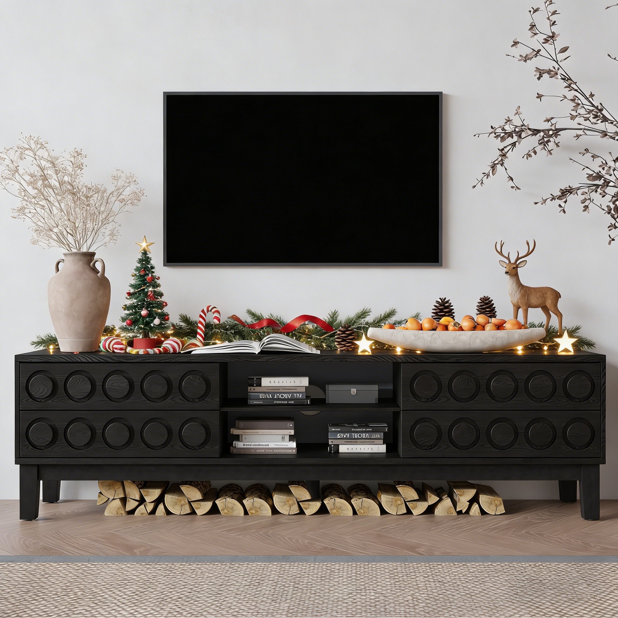 Modern Mid-Century Media Console With 4 Drawers Cable Management For 75 Inch