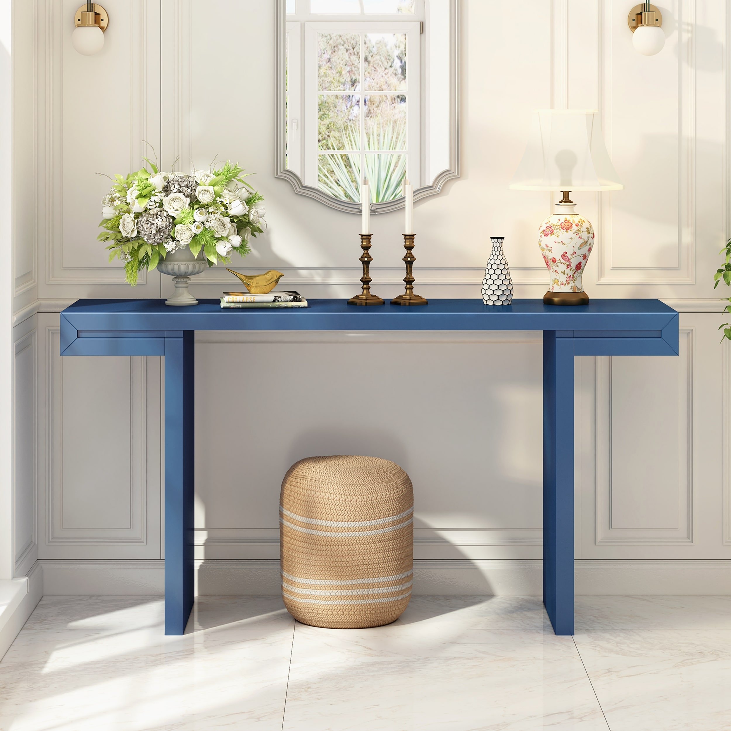 Stylish Console Table with Geometric Clean Lines Design and Adjustable Feet for Living Room, Entryway, Hallway