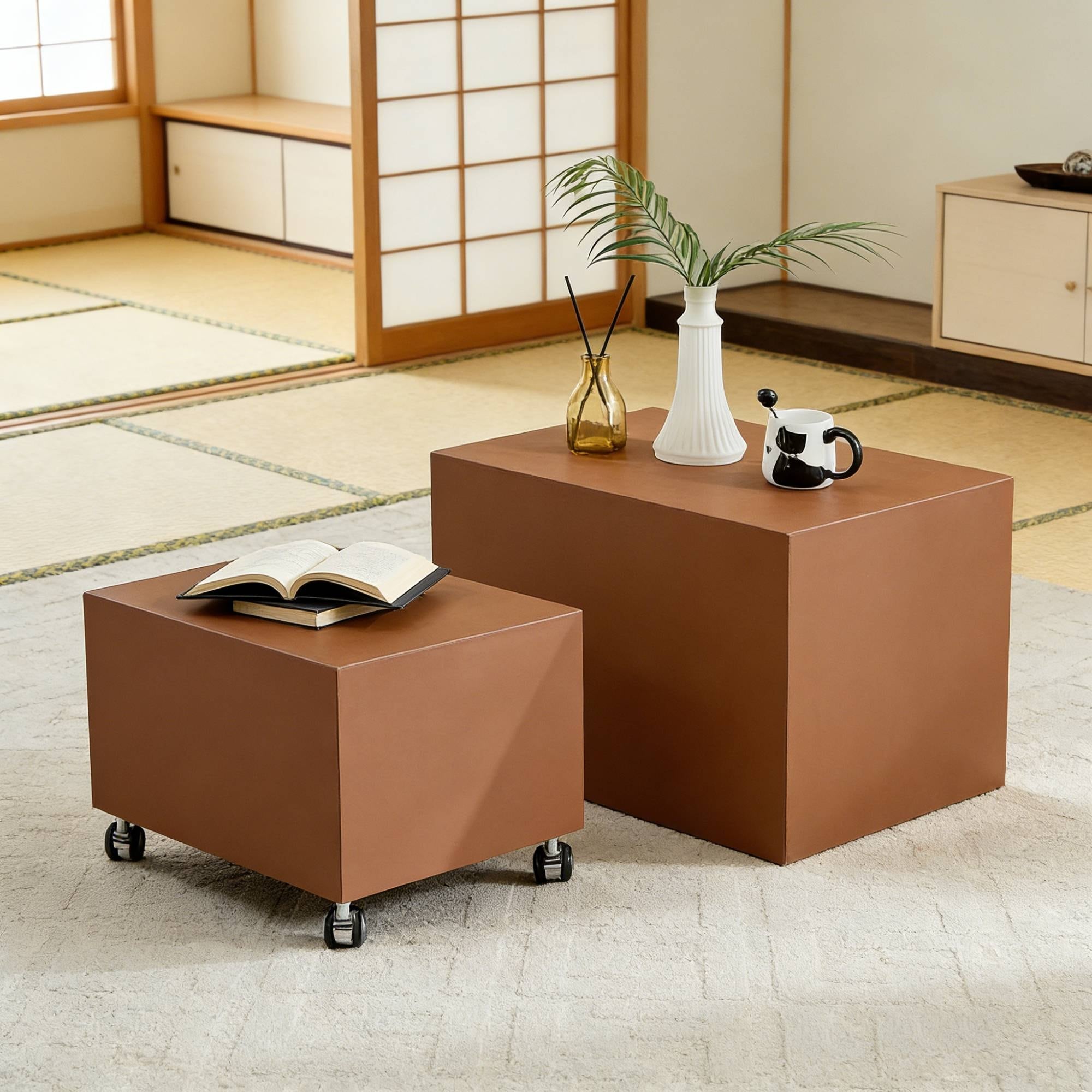 Rossetta Modern Small Rectangle Vibrant Color Hue Saddle Leather Table Set of 2