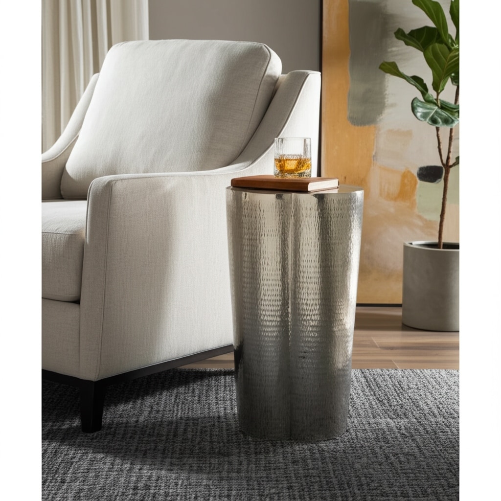 Metal Side Table with Modern Textured Base Elegant Narrow Home Decor