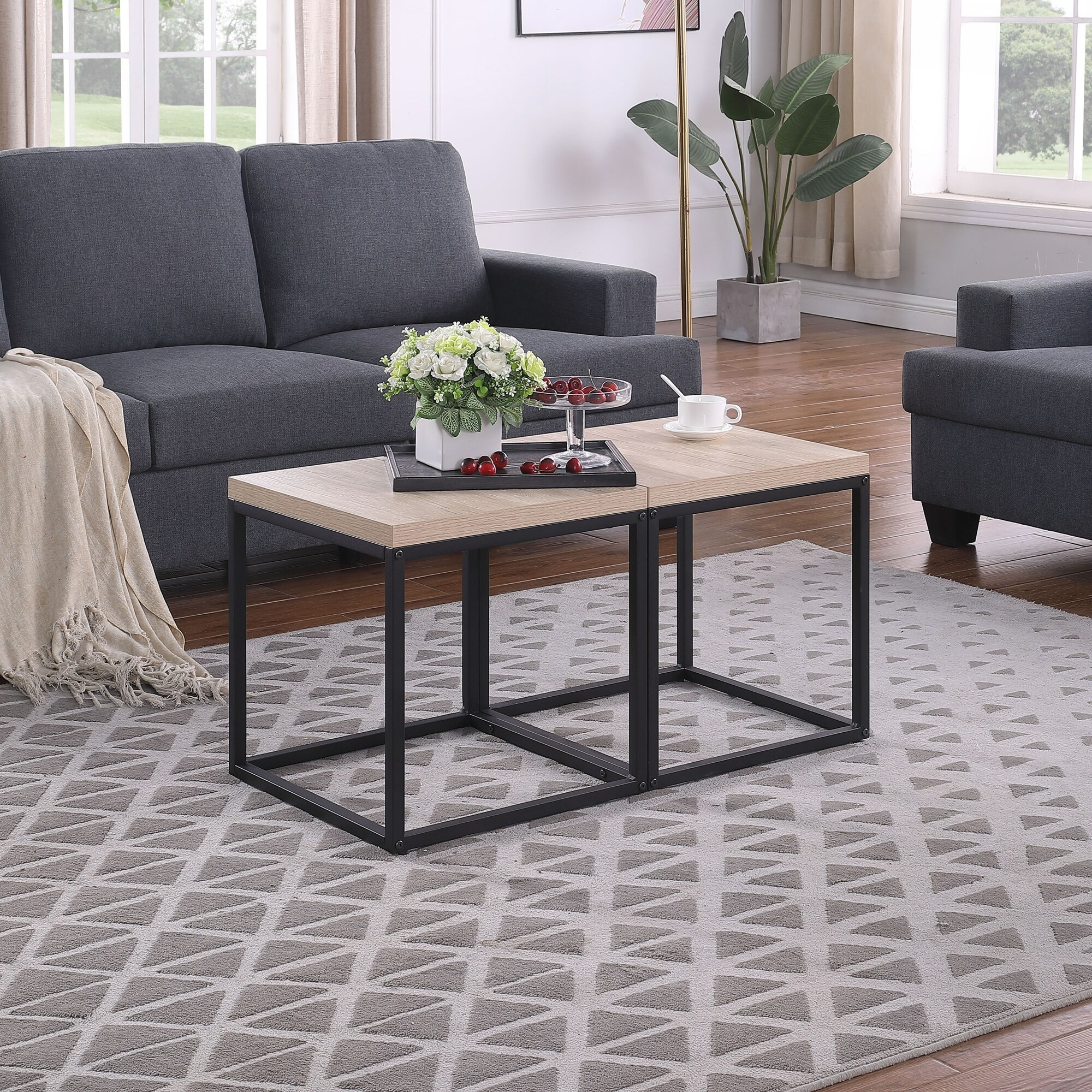 Living Room Table Set, Rectangular Coffee Table & 2 End Tables with Storage Drawers, Retro Sofa End Tables with Legs