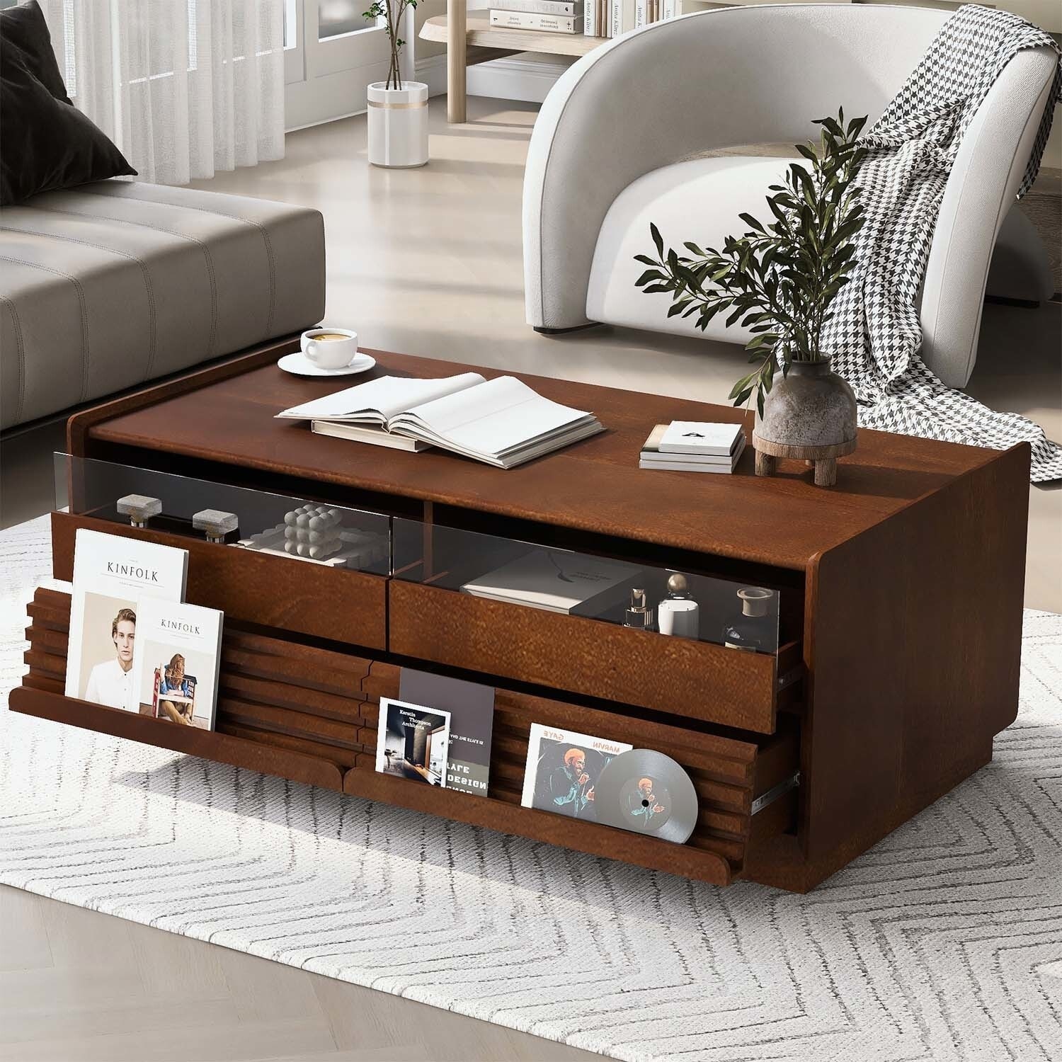 Vintage Coffee Table with 4 Drawers,2 Display Shelves,and Fluted Style,for Living Room