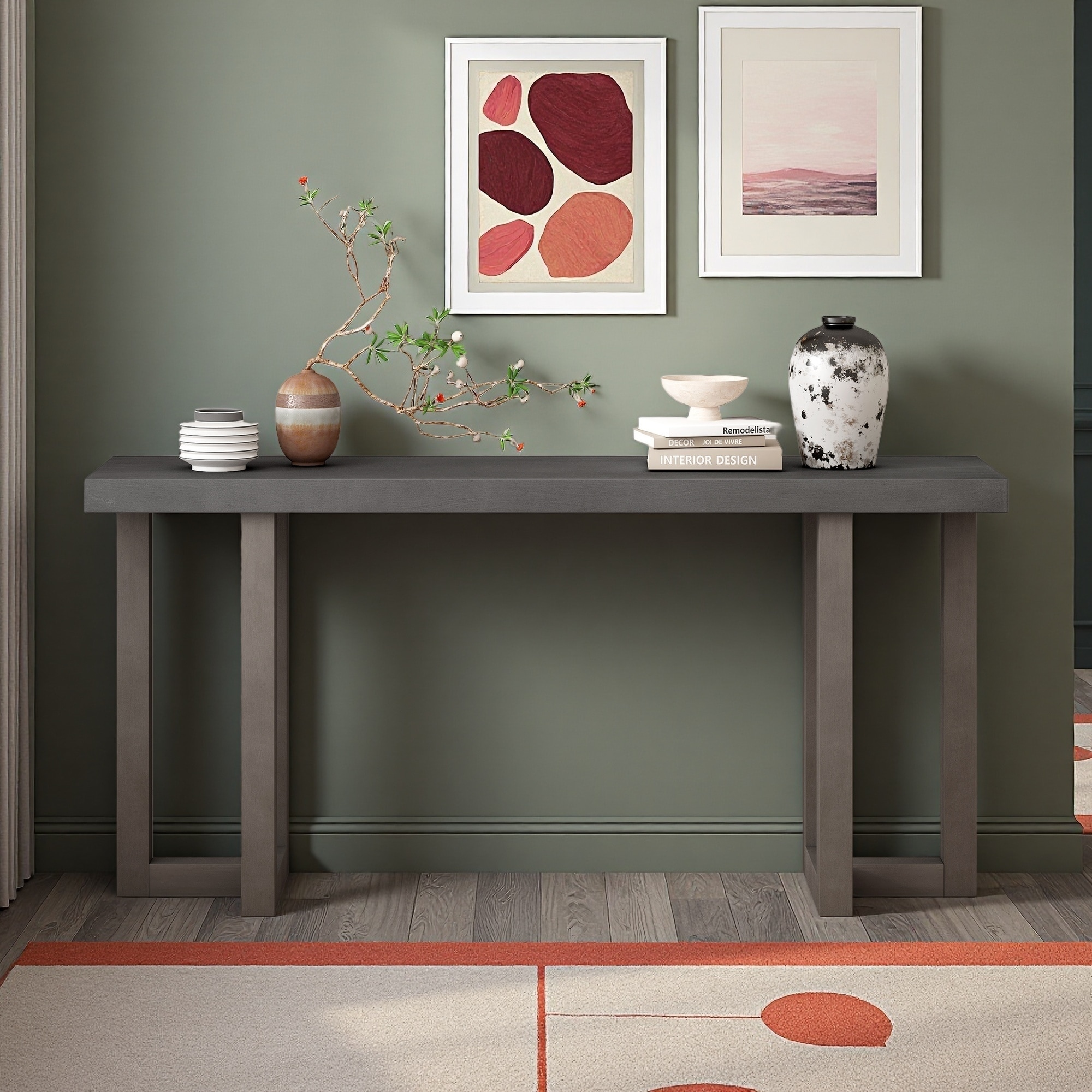 63" Pine Veneer Console Table with Geometric Legs & MDF Top