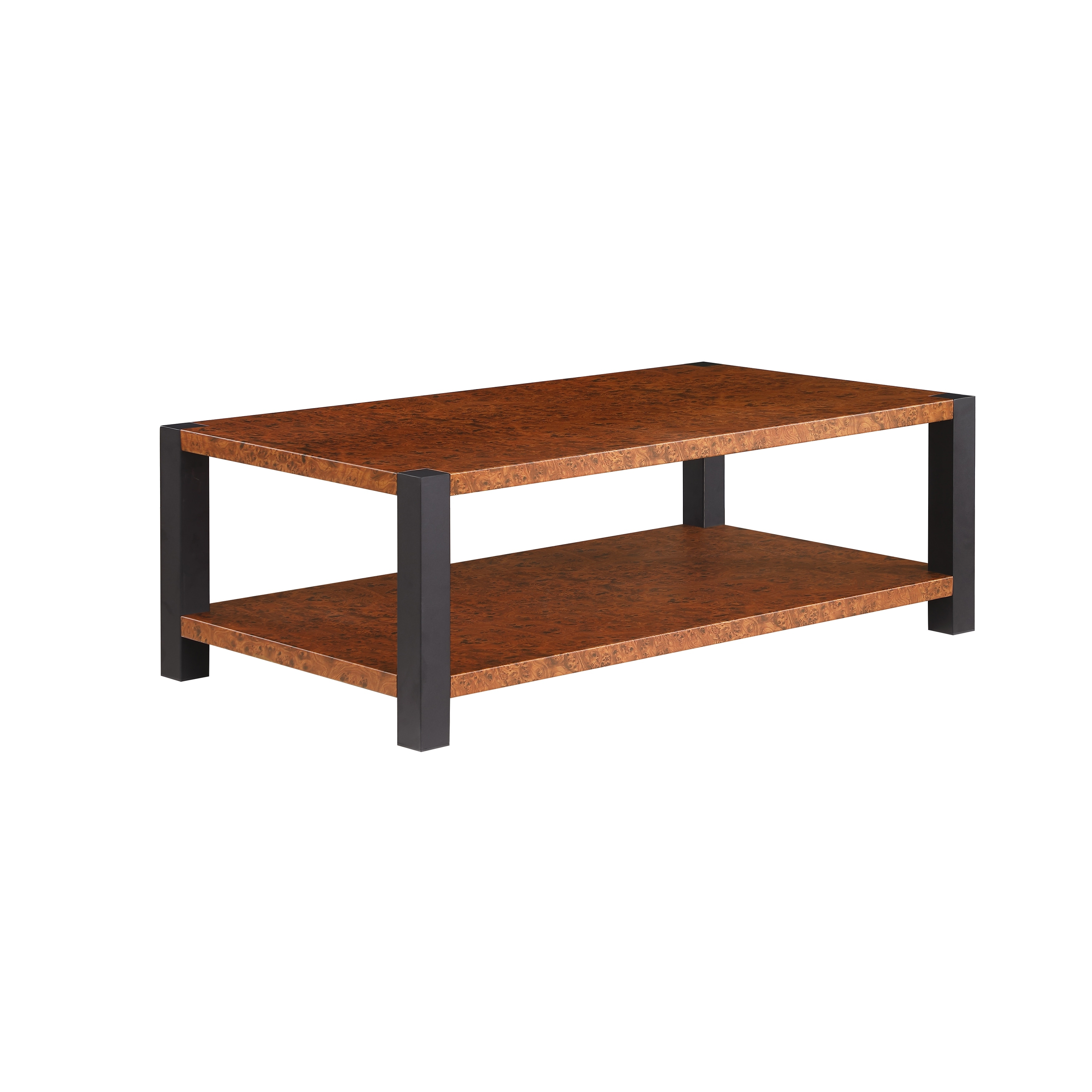55.1" Wood Coffee Table with Black Legs, 2 Open Storage Shelves, Modern Living Room Table
