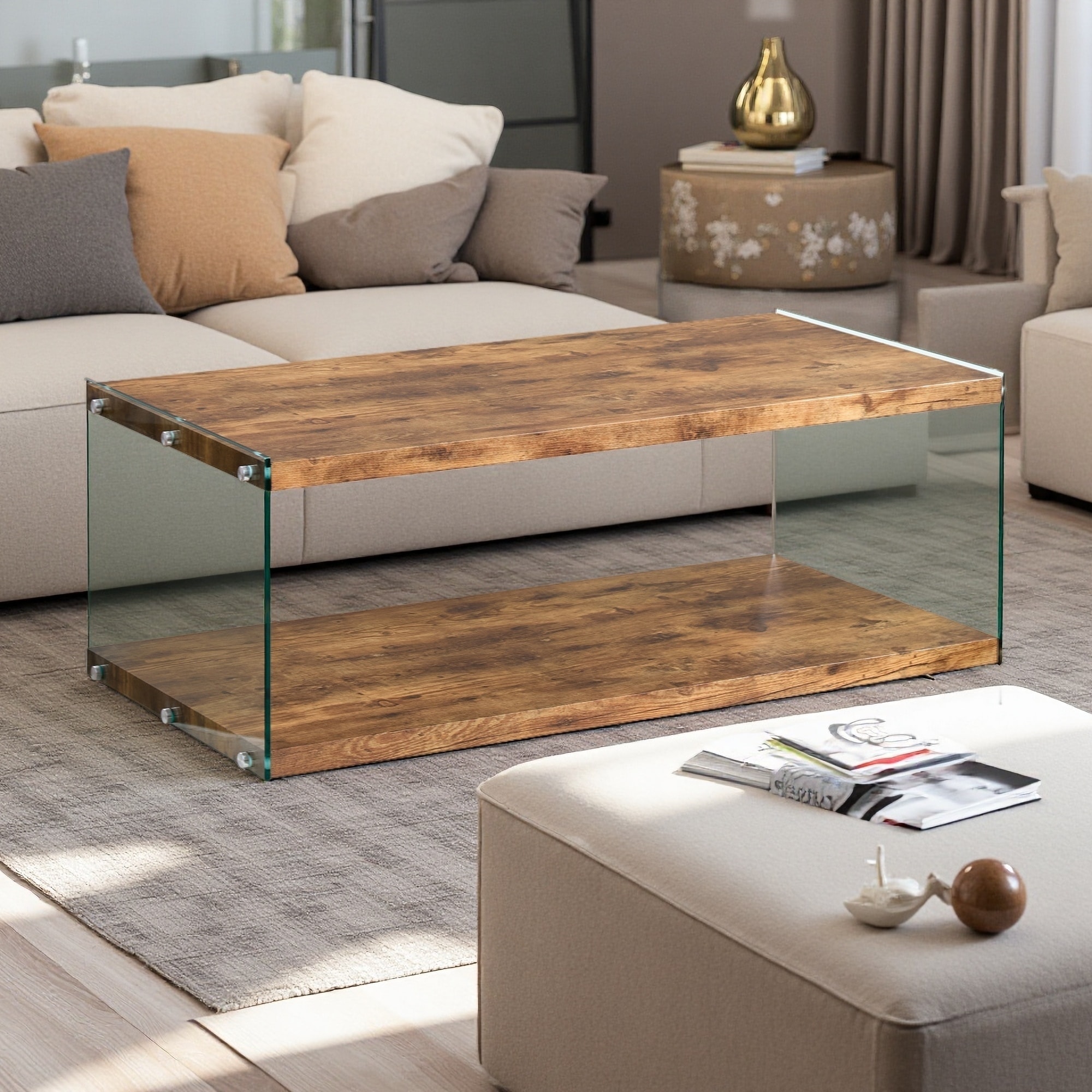 Rectangle Coffee Table with Gray Tempered Glass top and Black Legs