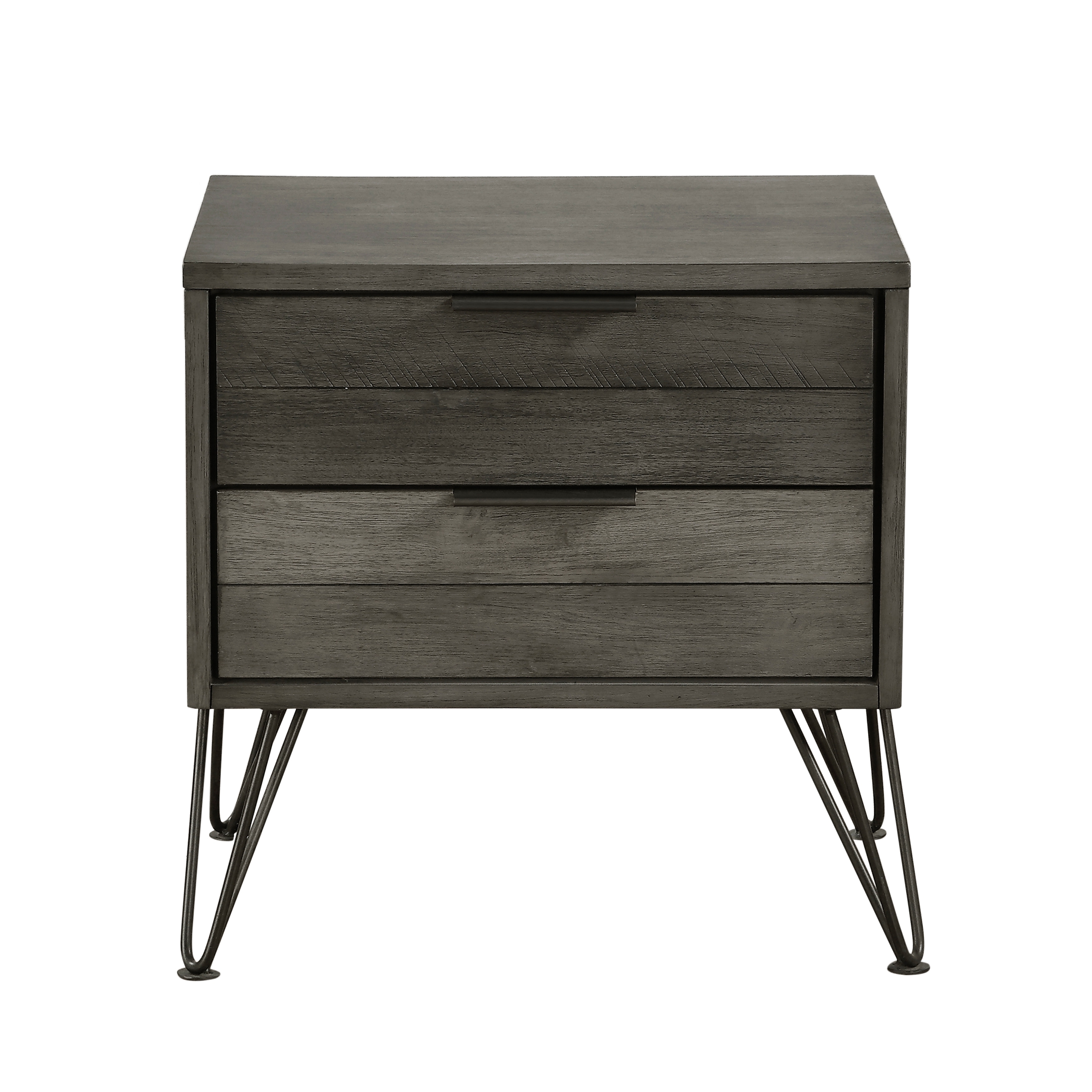 Contemporary Nightstand, Three-Tone Finish, Metal Legs, Acacia Veneer