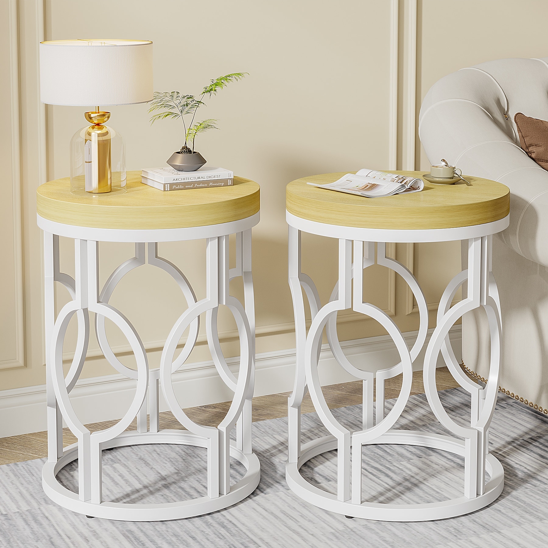 Wood Round End Side Table for Living Room Bedroom