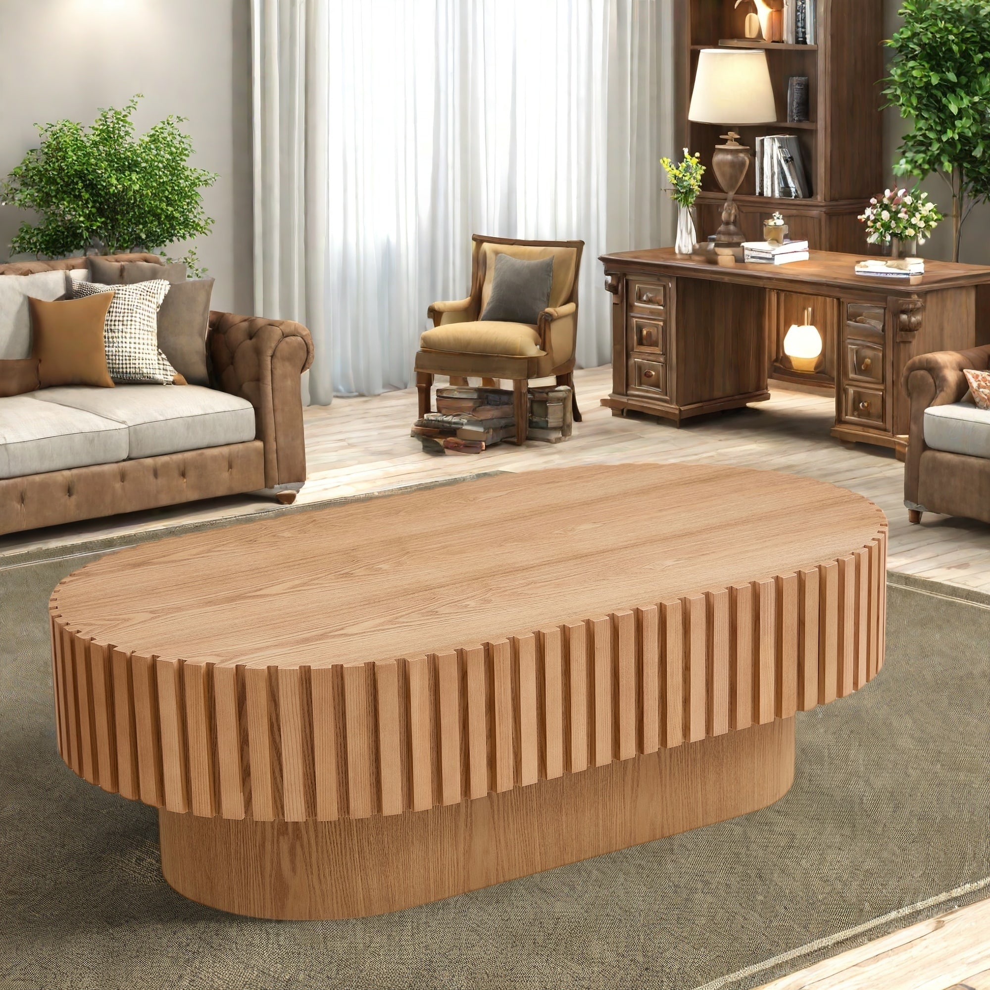 43.7" MDF Coffee Table with Solid Wood Relief and Multi-Functional Use