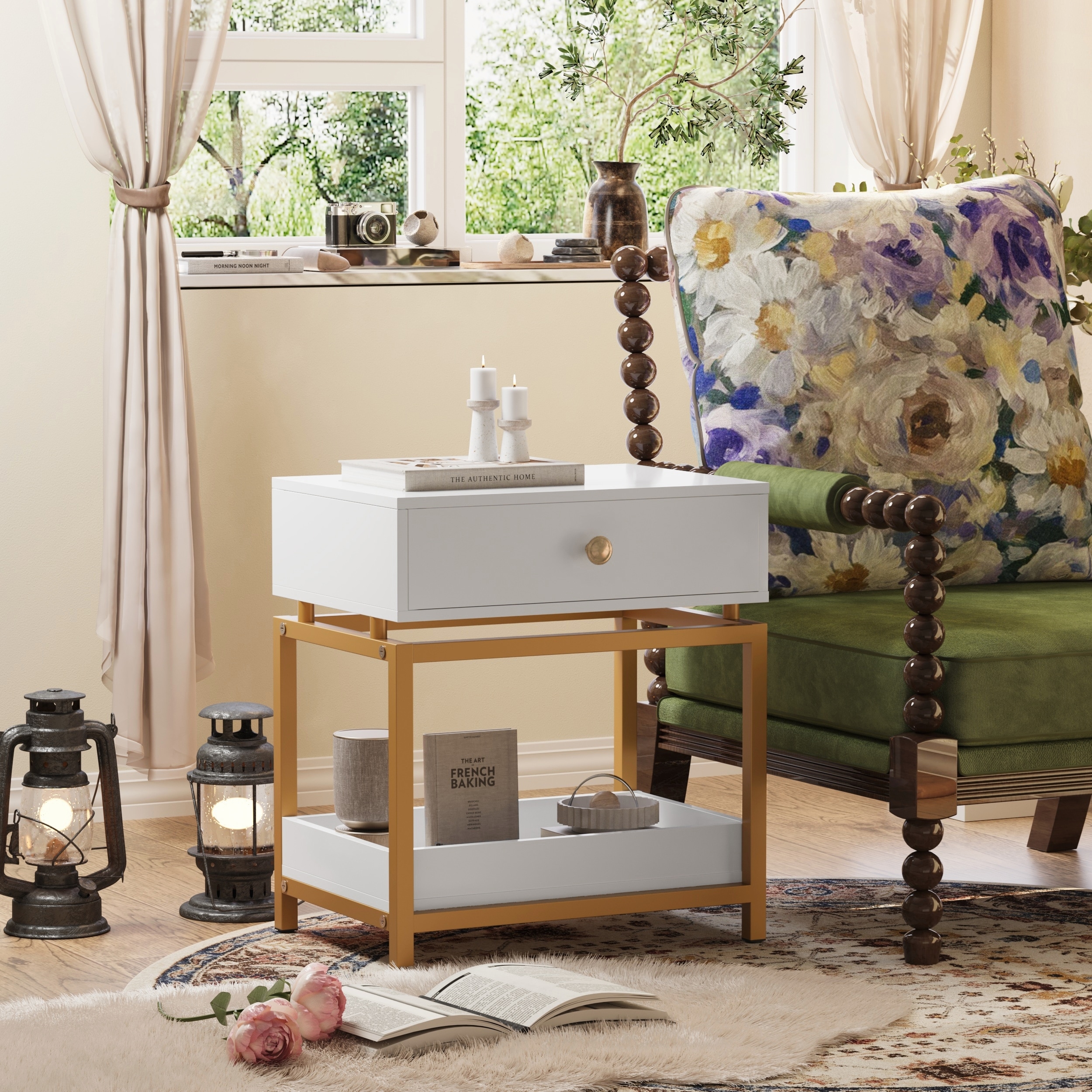 End Table with Drawer and Open Shelf for Living Room and Bedroom