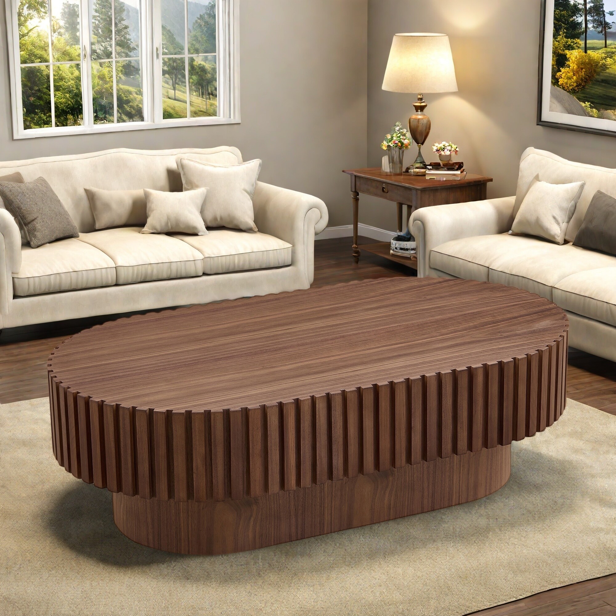 43.7" MDF Coffee Table with Solid Wood Relief and Multi-Functional Use
