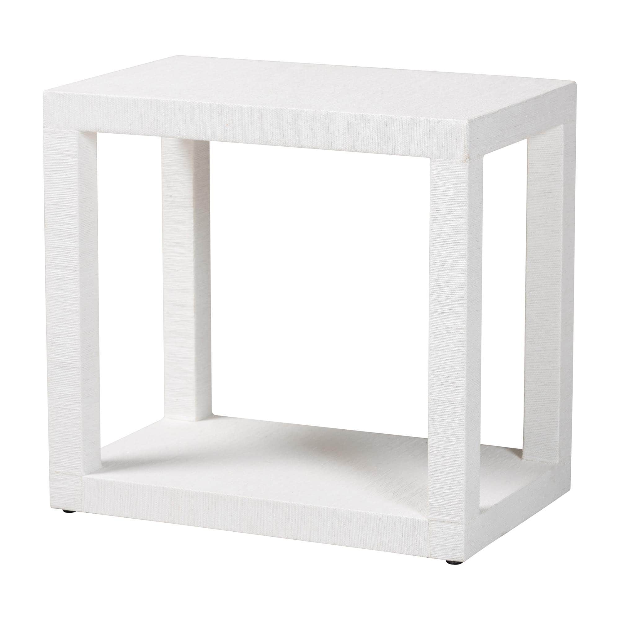 Oaklynn Natural Grasscloth End Table - Two-Tier Accent Table with Open Frame, Modern Coastal Complement, White