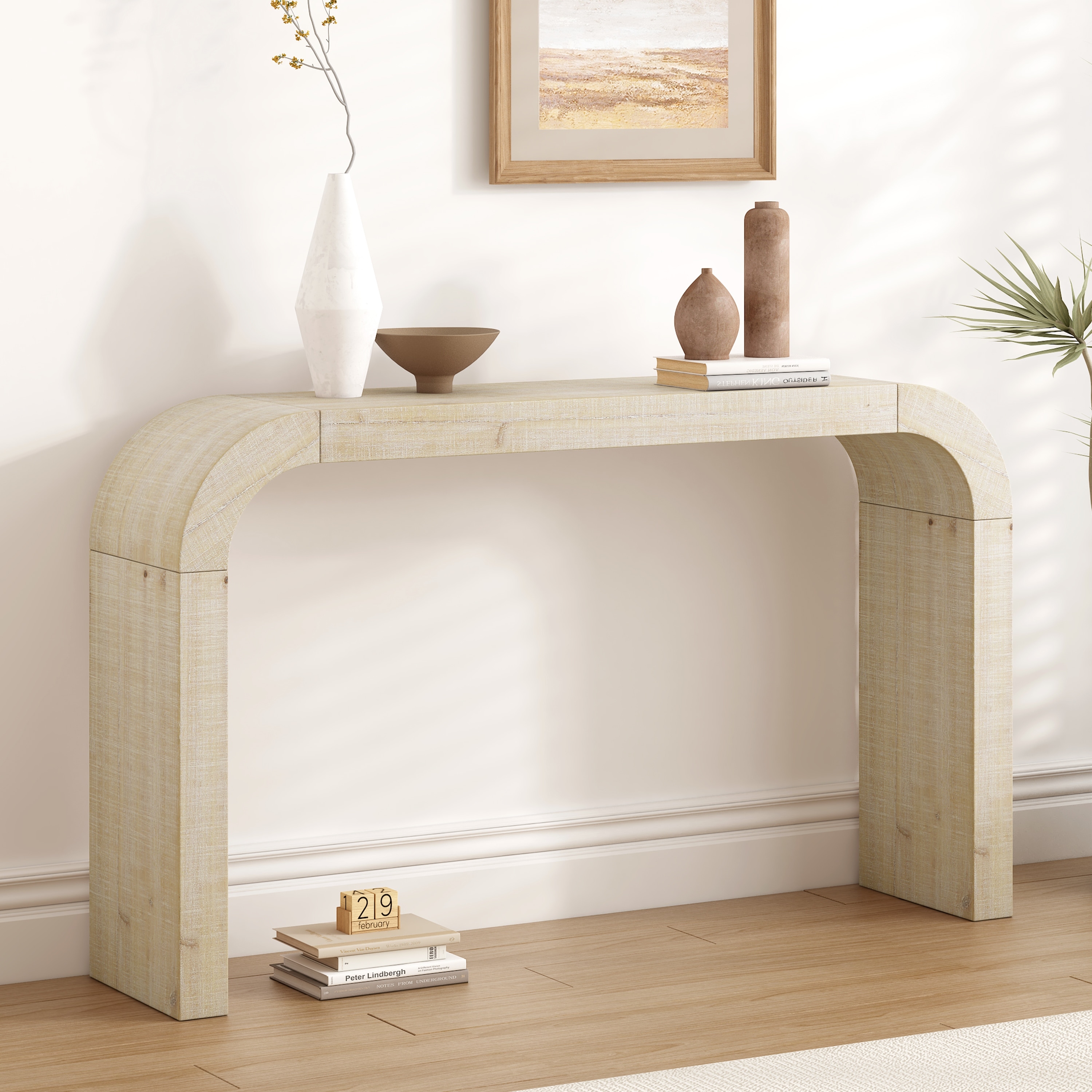 Wood Console Table With Curved Edge And Natural Texture For Entryways And Living Rooms