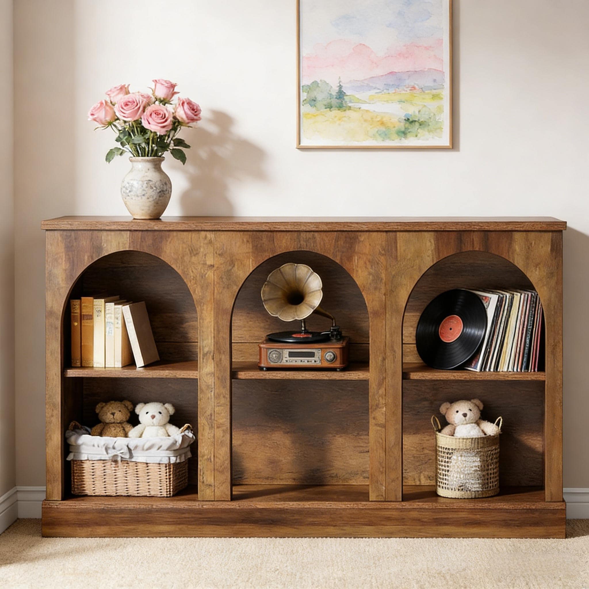 Console Table with Triple Pedestal Entryway Table