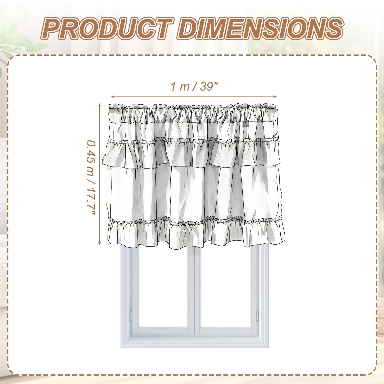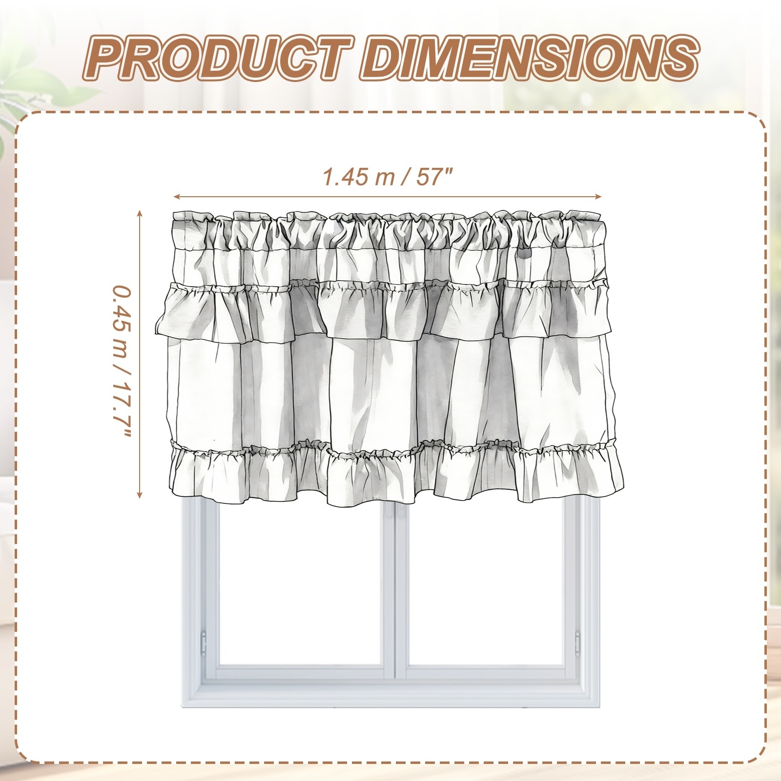 1 Panel Ruffle Valance Curtain, Gray, 17.7" W x 39" L