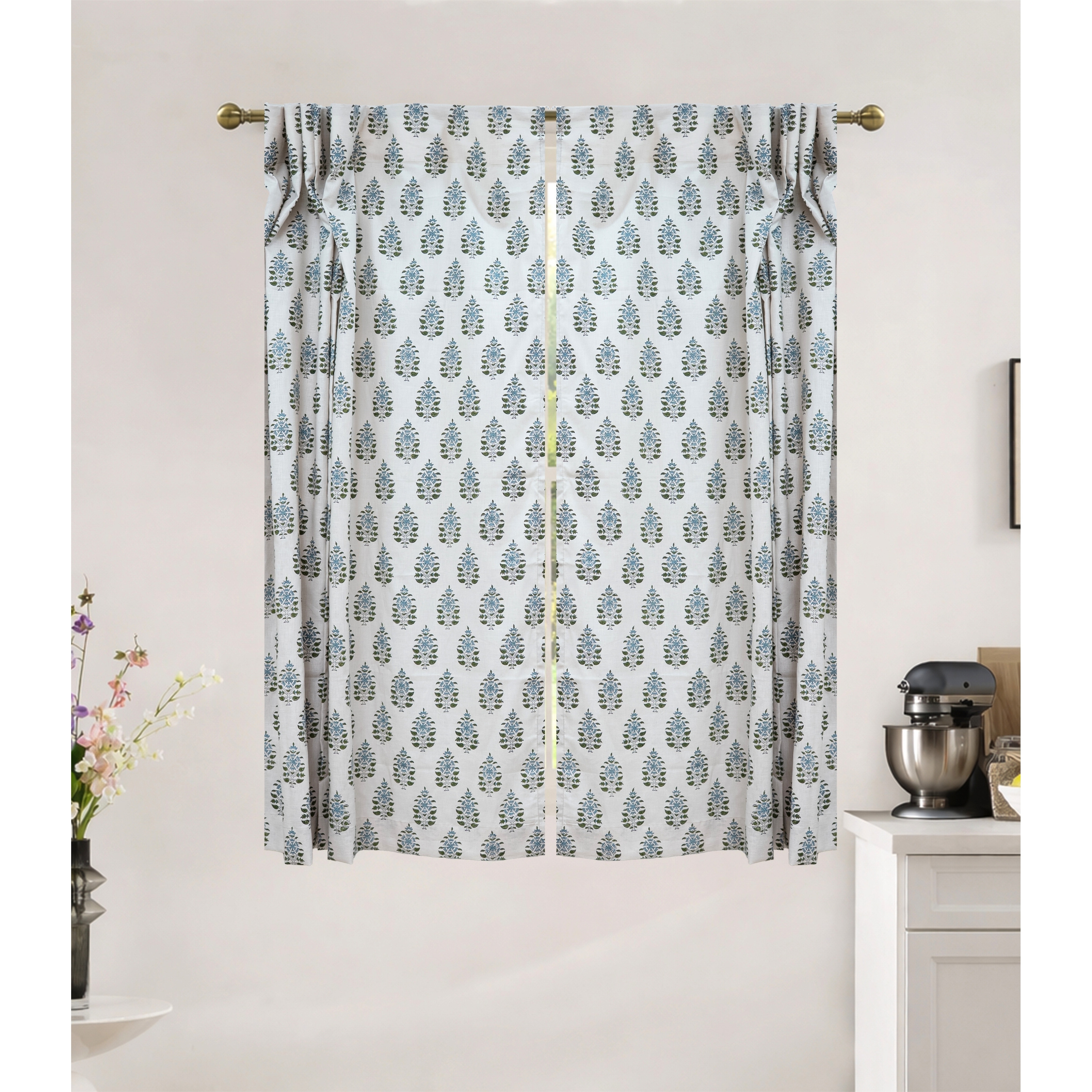 Fabdivine Ethnic Hand Block Print Floral Linen Curtain for Elegant Home Window and Room Decoration, Gulnaari