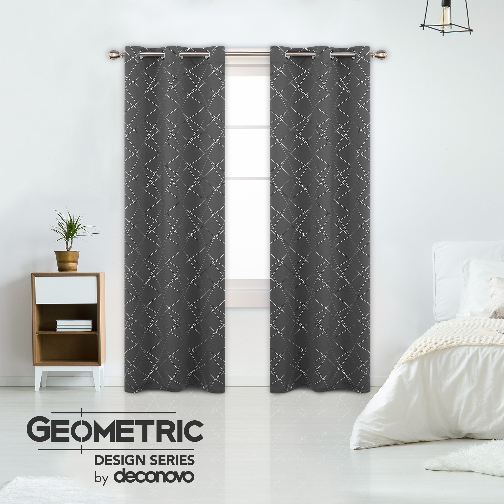 Deconovo Silver 42 Inch Geometric Curtain Panel Pair(2 Panel)