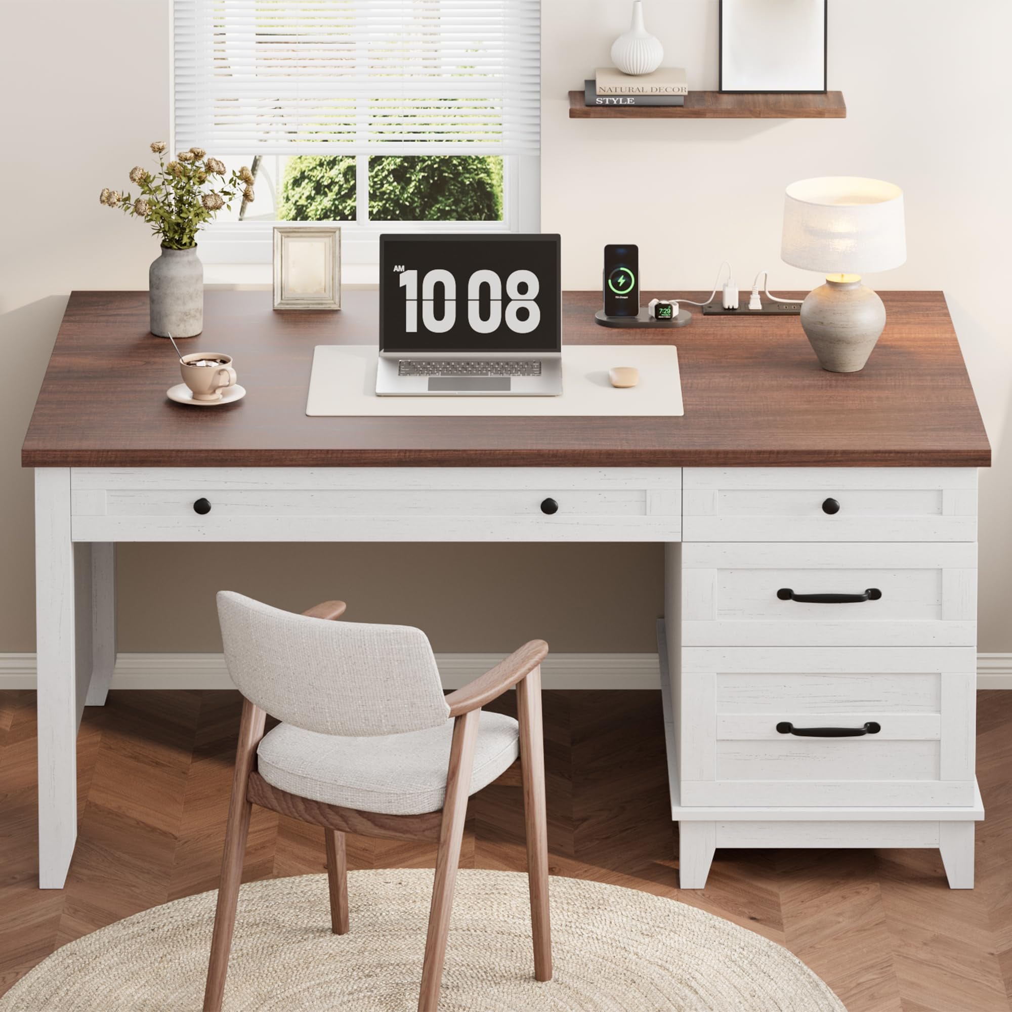 53.5" Executive Desk with 4 Drawers Wooden Computer Writing Desk