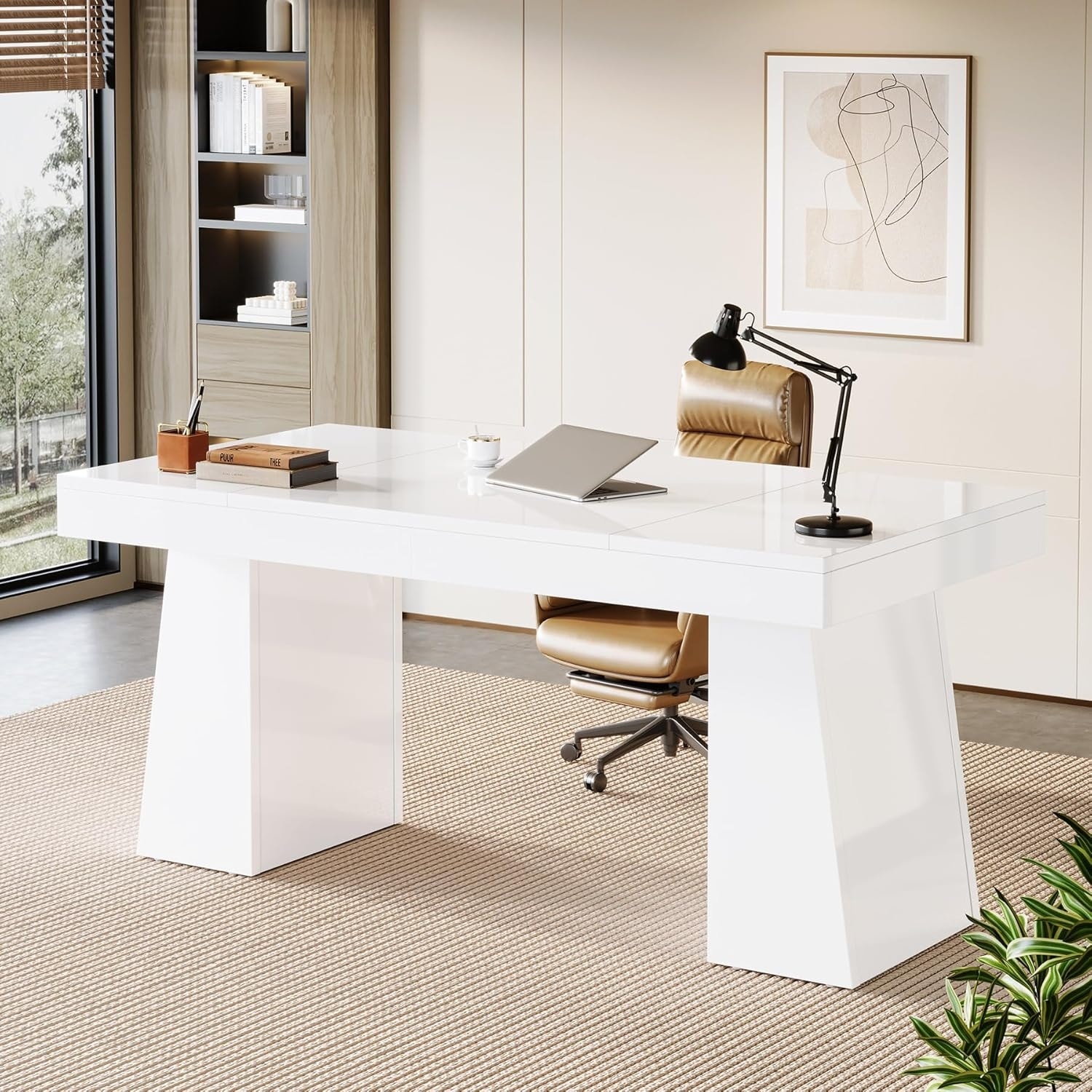 55" Modern Executive Desk, Large Home Office Desk with Double Pedestal