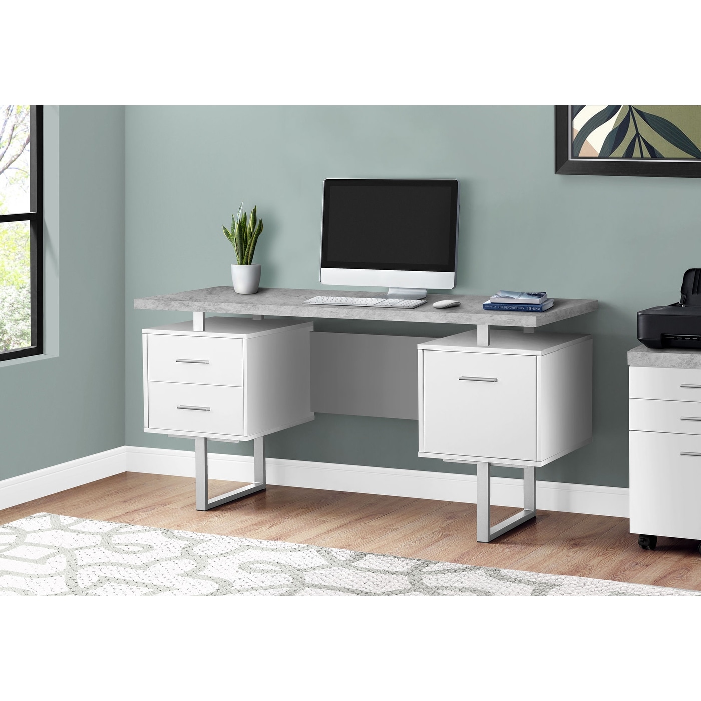 59'' Modern Computer Desk with File Drawers for Home Office