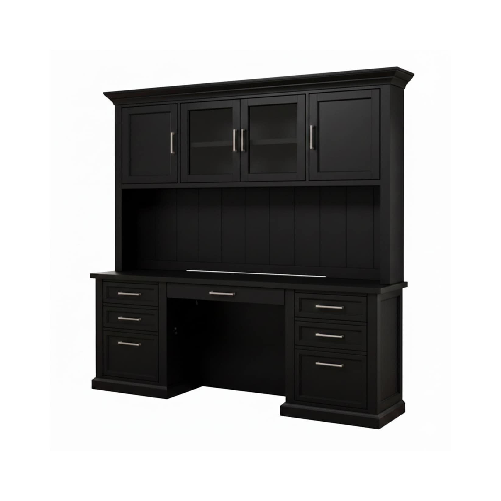 Abby Modern Wood Hutch with Doors and Credenza Desk - Black