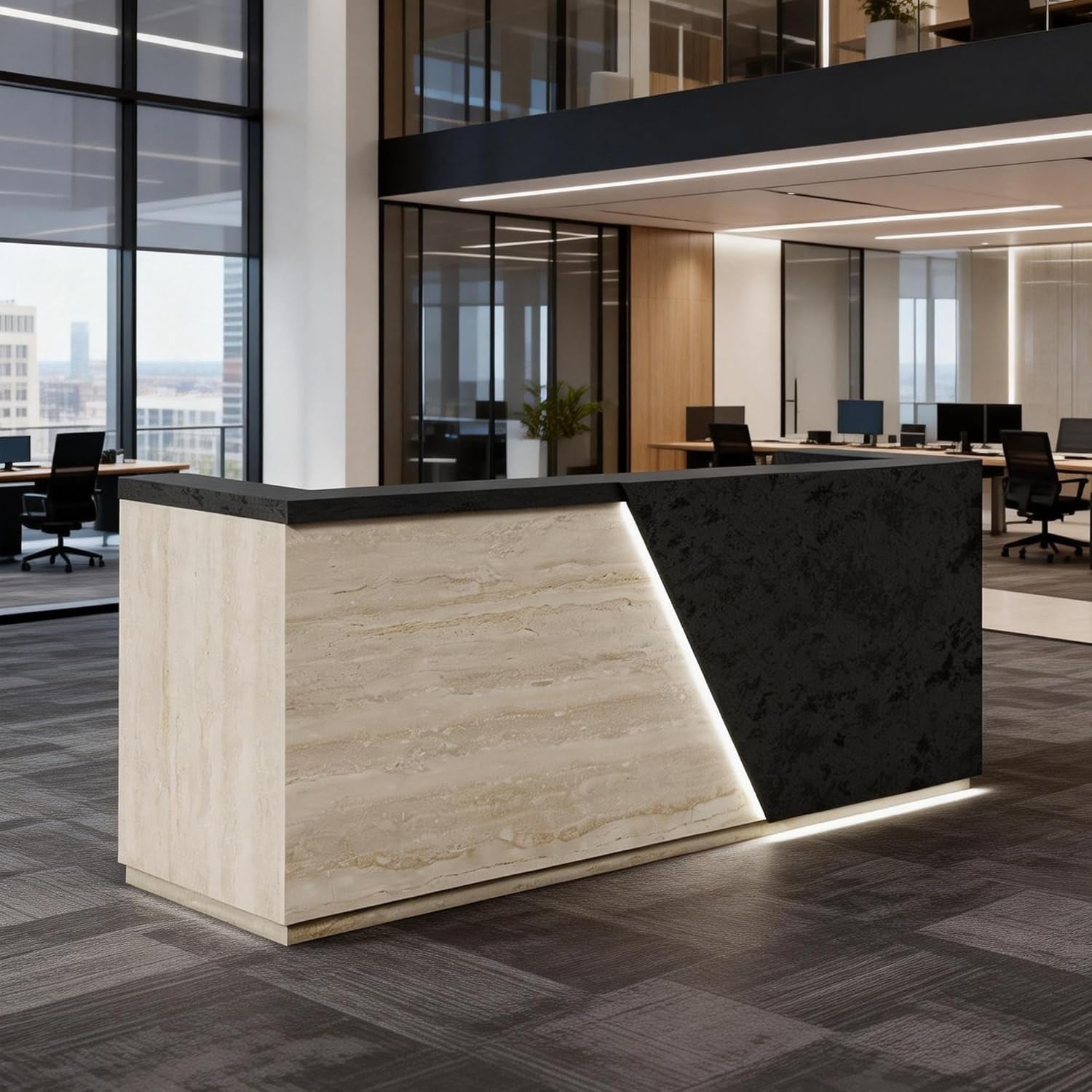 Reception Desk with Counter for 2 Person, Privacy Counter Design Modern Front Desk with Dual Keyboard Trays & Cable Grommets