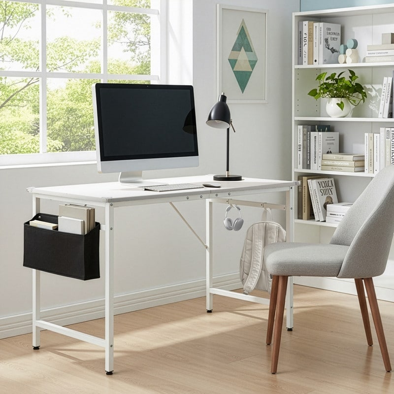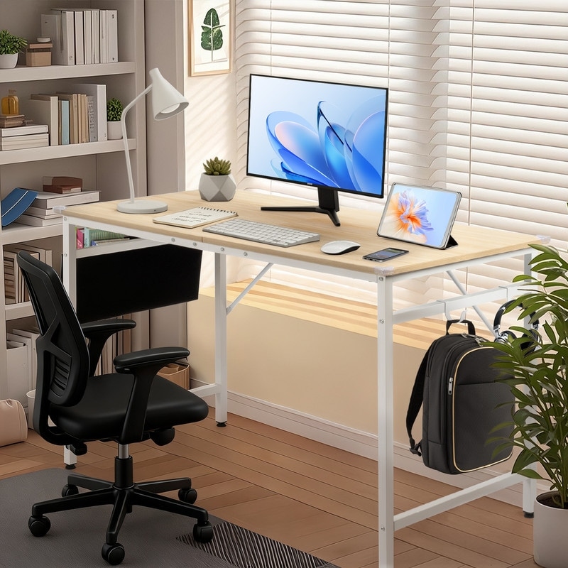 47.2” Computer Desk for Home Office - Study Writing Desk with Storage, Side Hooks & Adjustable Feet