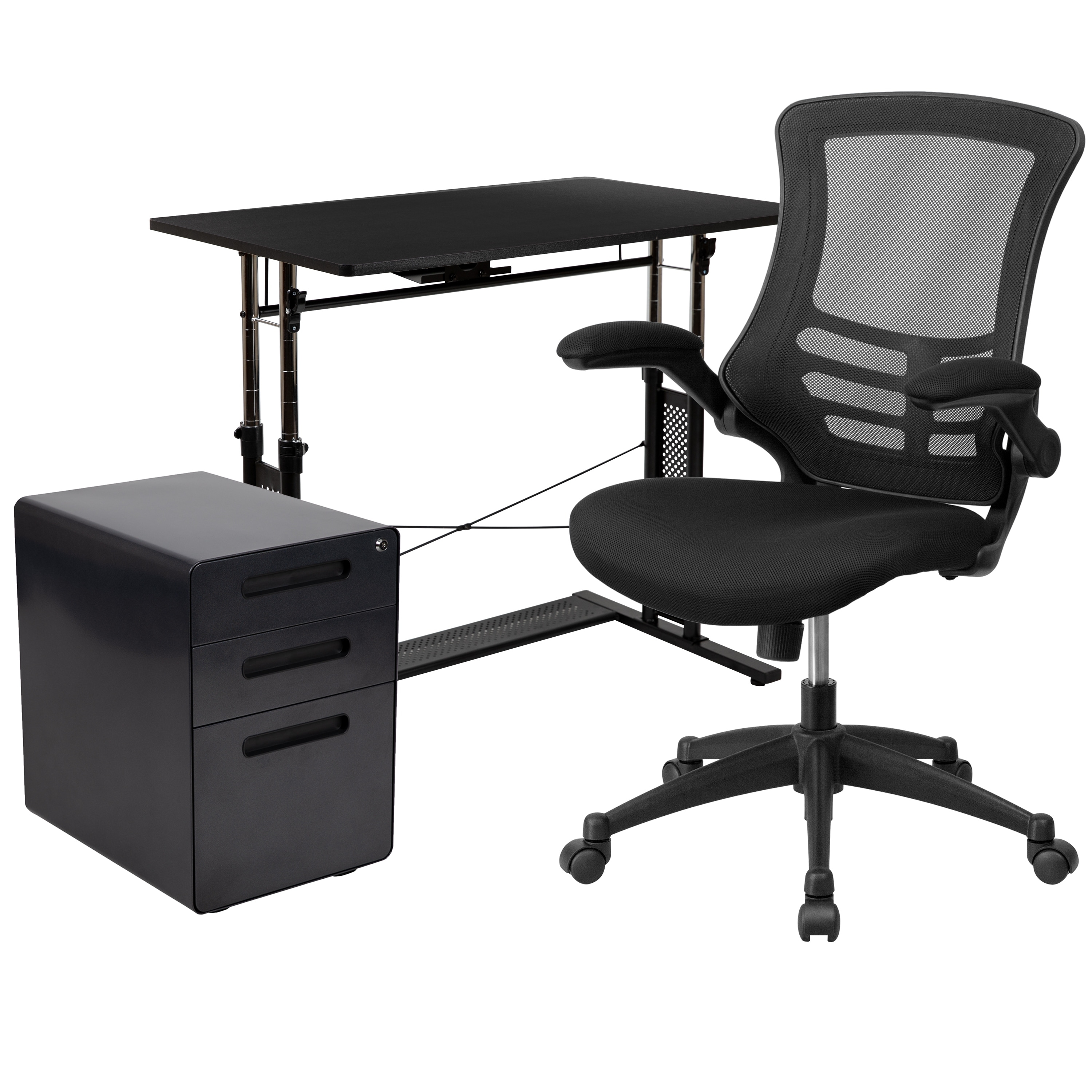Office Set-Adjustable Computer Desk, Ergonomic Mesh Office Chair, Filing Cabinet