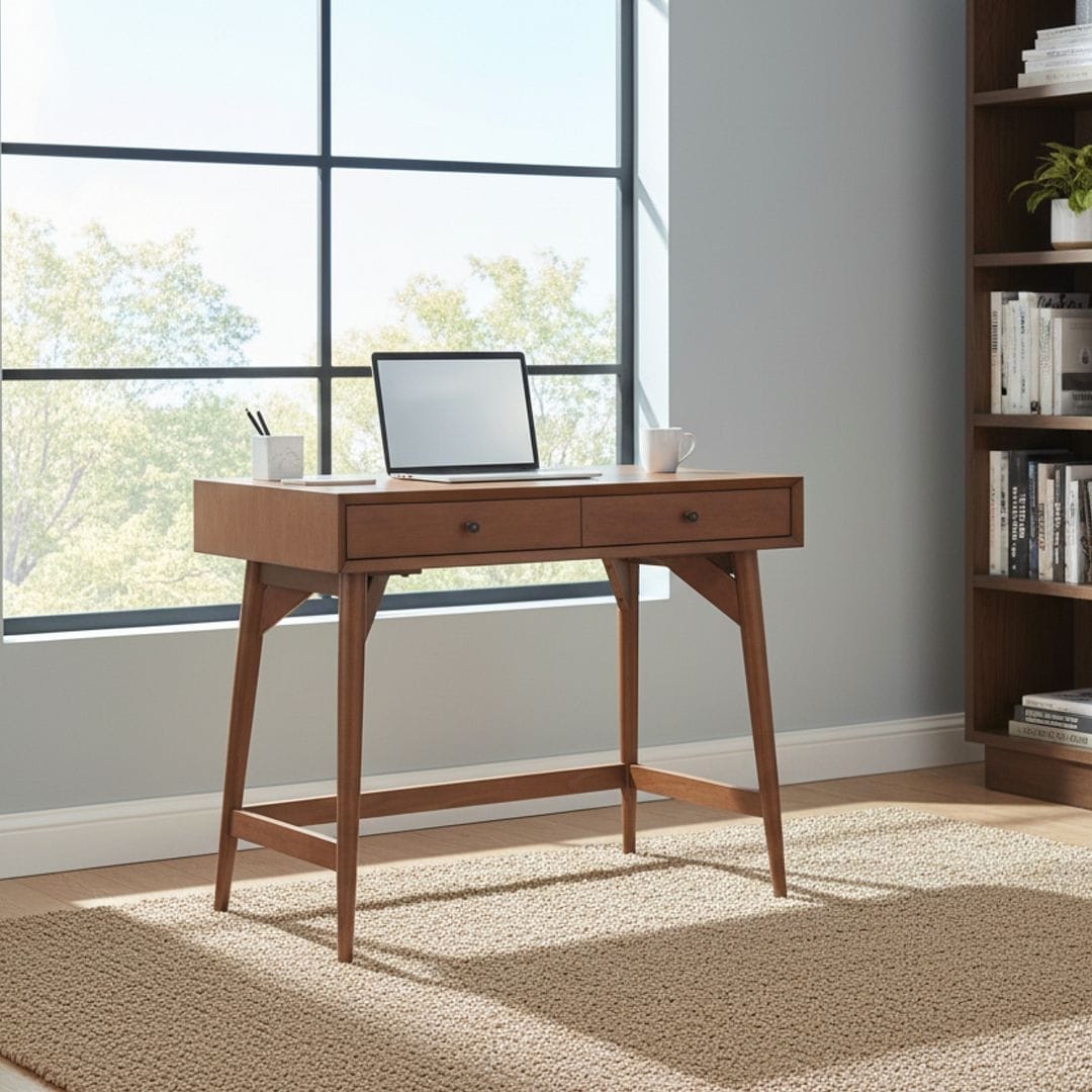 Alpine Furniture Flynn 36" W 2 Drawer Writing Desk, Chestnut