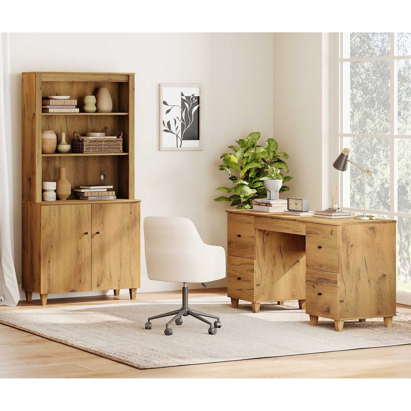 Swing Out Desk with Bookshelf - Global Greatness - Home Office Workstation