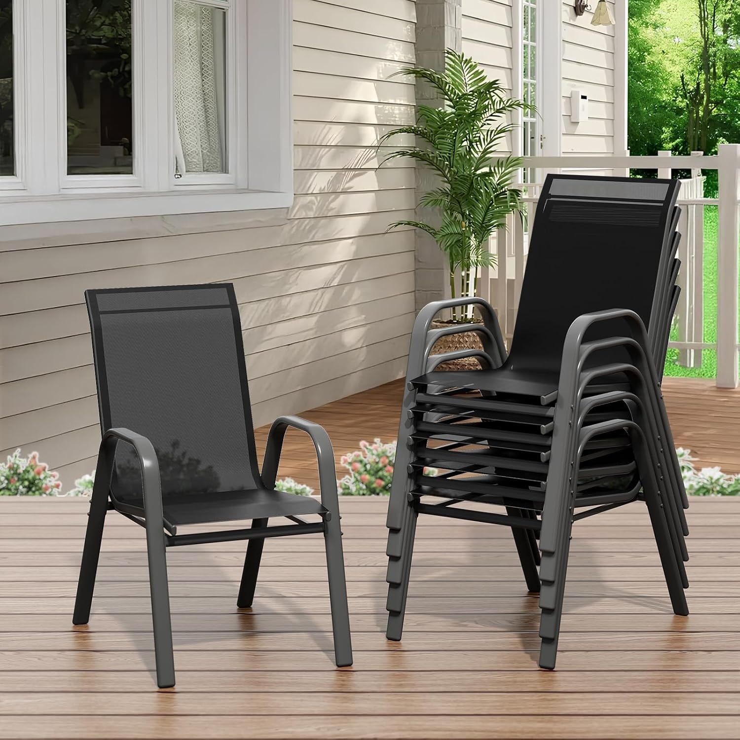 Patio Chairs Set of 4/6, Outdoor Stackable Dining Chairs, All-Weather Deck Stacking Chairs with High Back for Backyard