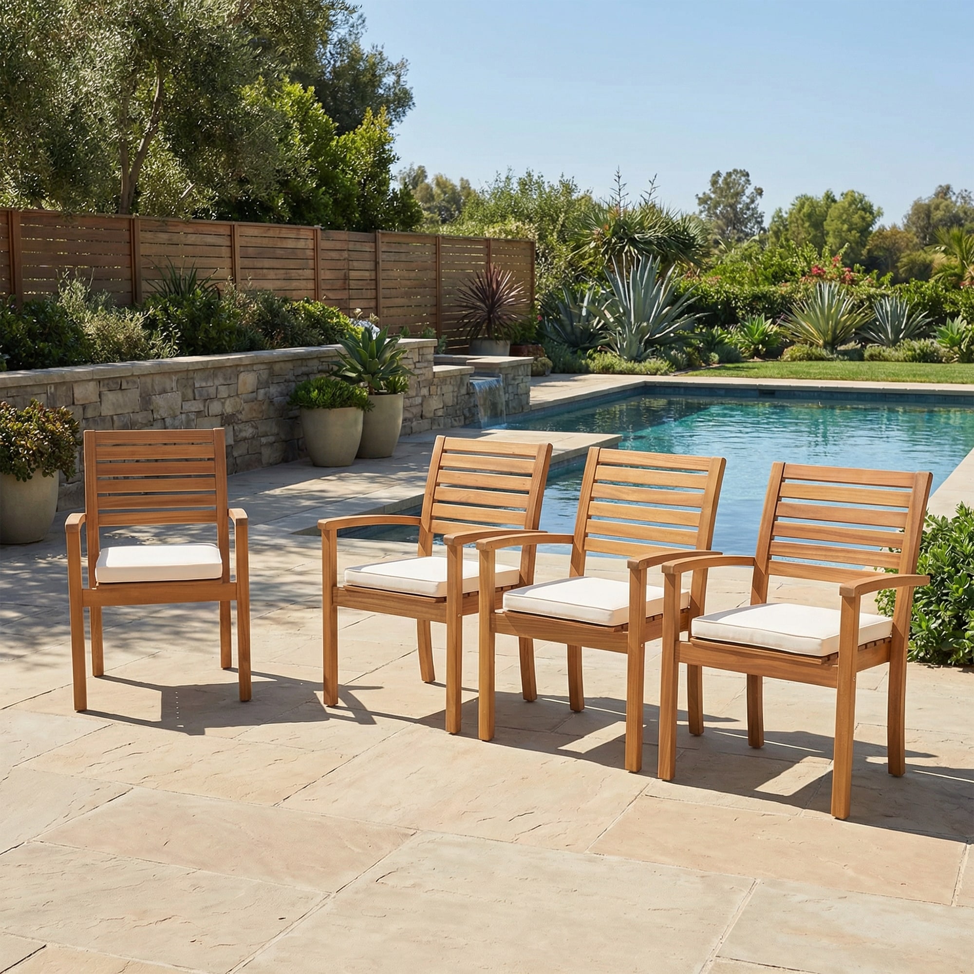 Outdoor Stackable Acacia Wood Dining Chair with Cushion