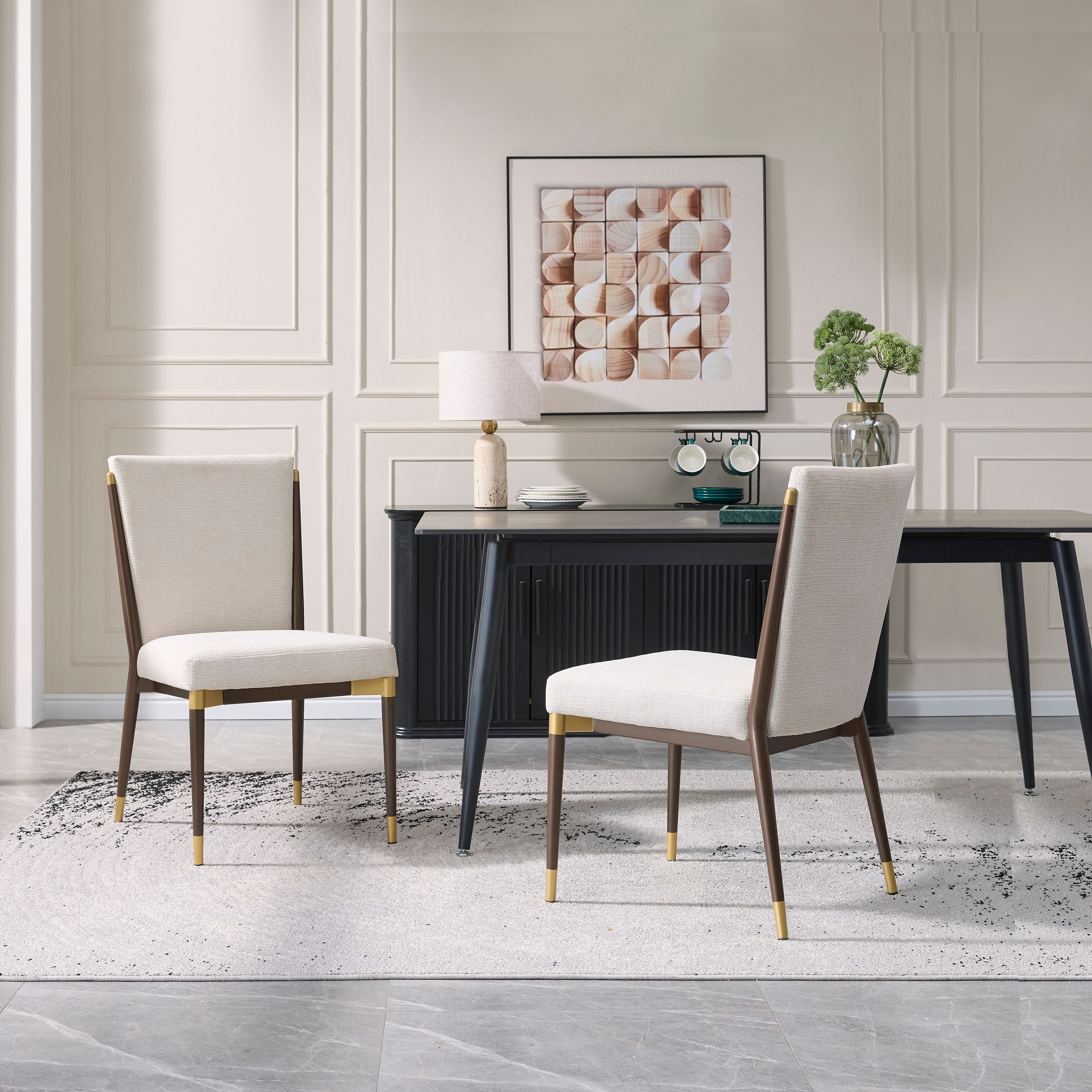 Luxury and Modern Home Dining Side Chair, White Leather Upholstered, Gold Legs, Set of 2, Assembly Needed - 37.80”