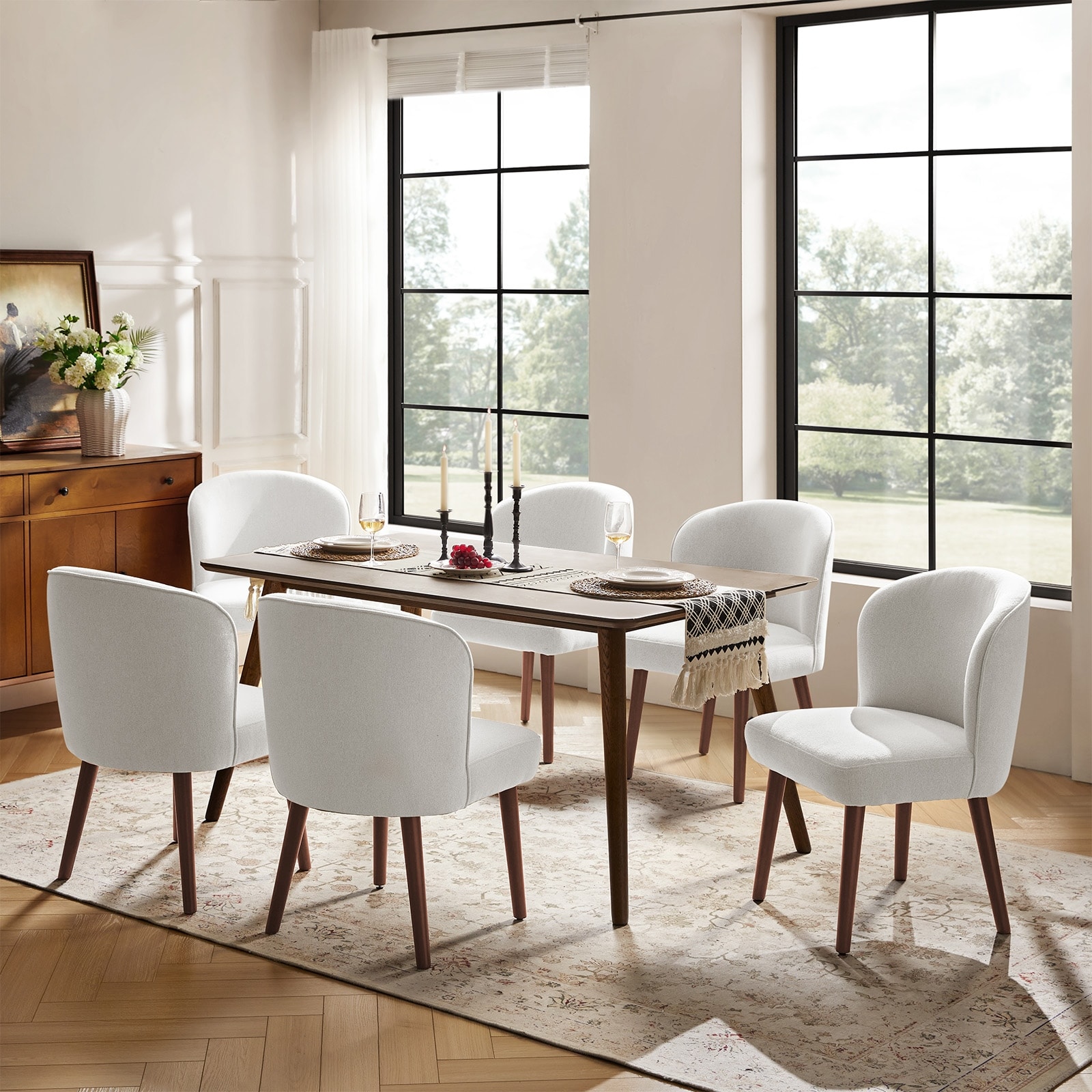 Cecilia Mid-Century Modern Dining Chair with Solid Wood Tapered Legs Set of 6 By HULALA HOME