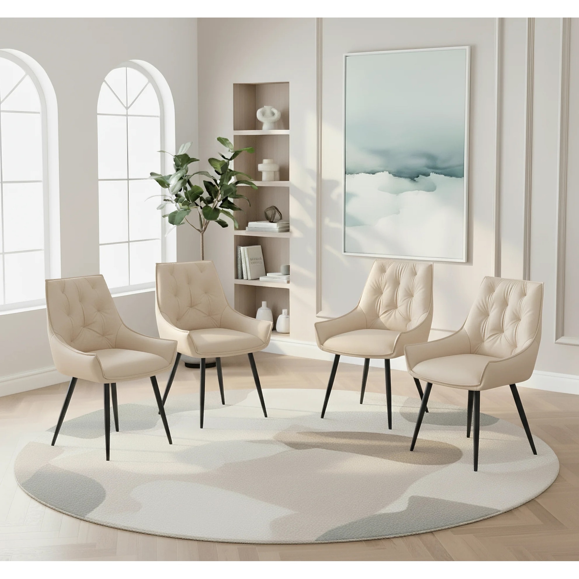 Set of 4 Side Chair Dining Chair Kitchen Chair Leather Chair Flat Back Upholstered Chair Off White Chair