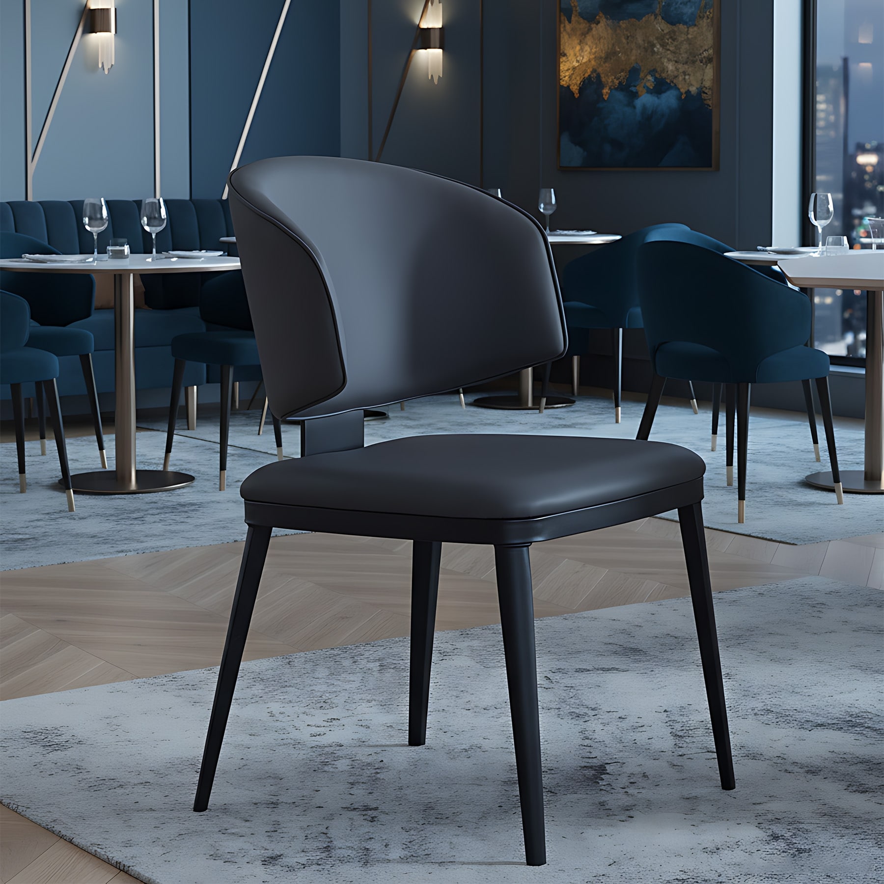 Modern Armless Faux Leather Upholstered Dining Chair with Curved Floating Back & Black Metal Legs - N/A