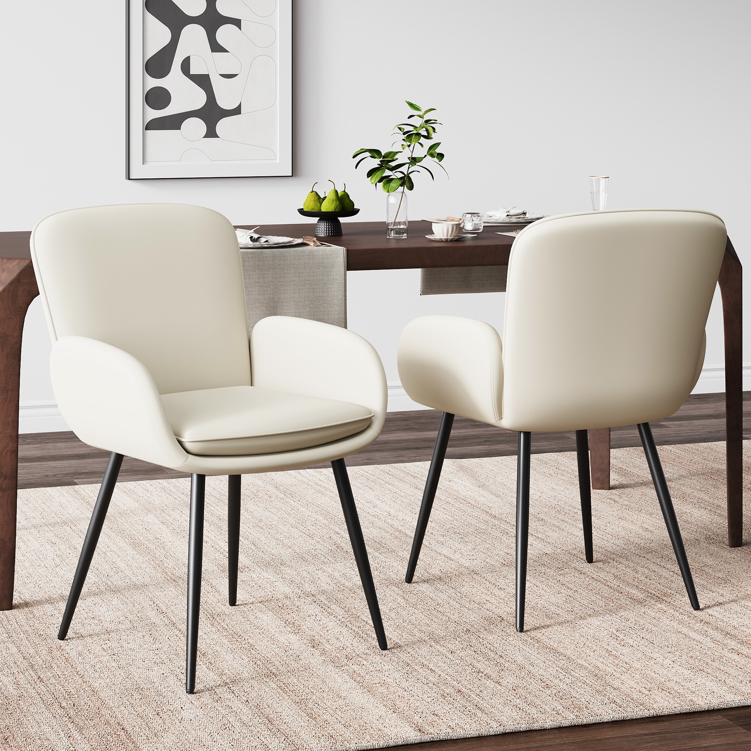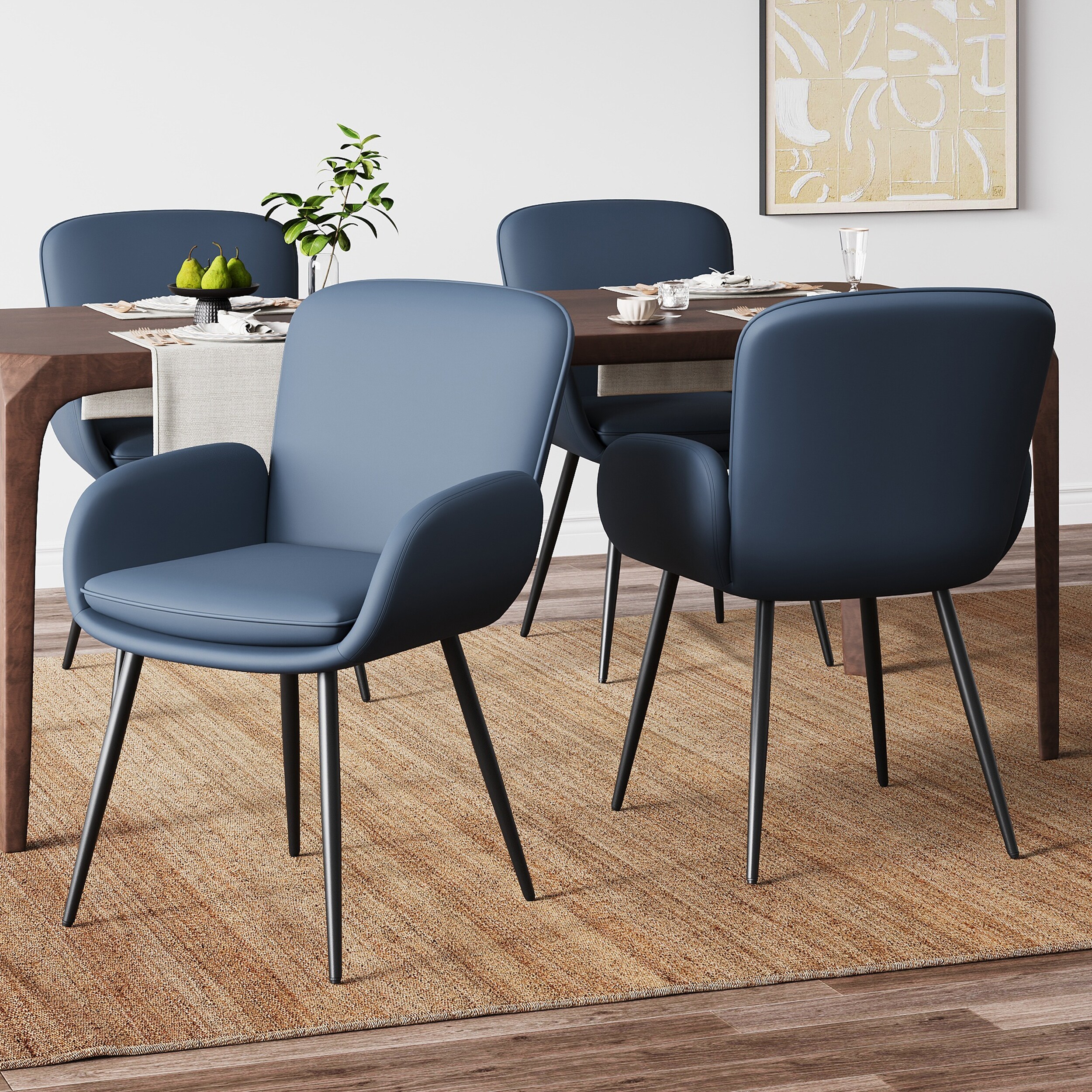 Dining Chair Set of 4, PU Kitchen Upholstered Chairs with Metal Leg