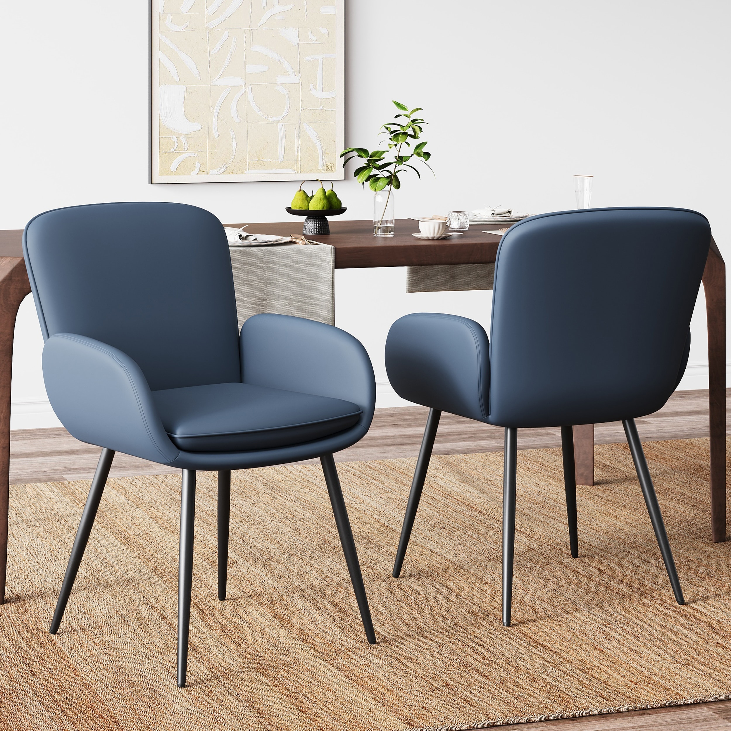 Modern minimalist dining chair faux leather upholstery with metal legs