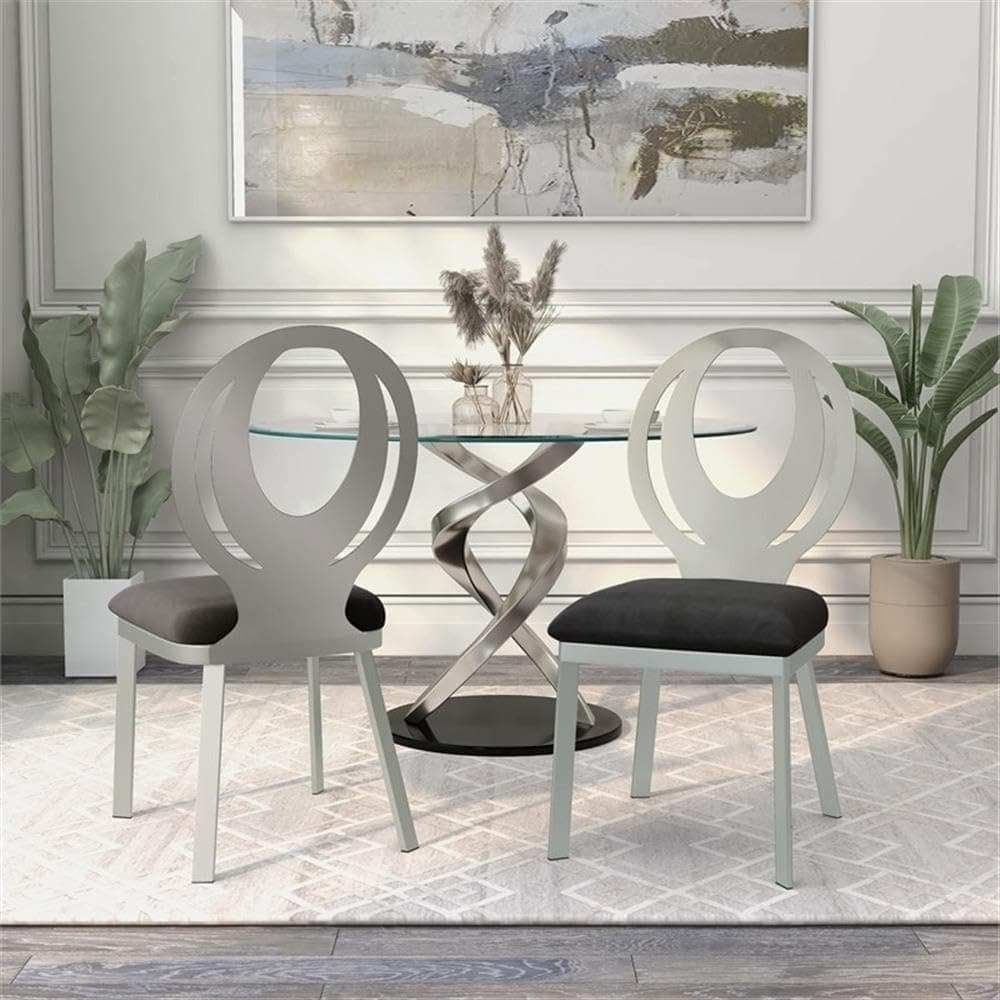 Modern Silver Black Finish Oval Back Side Chairs Set